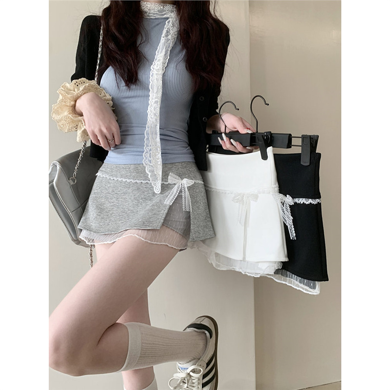 Лук, кружевная сшитая юбка, женская летняя анти-легкая девушка, бедра, короткая юбка, серая юбка с высокой талией