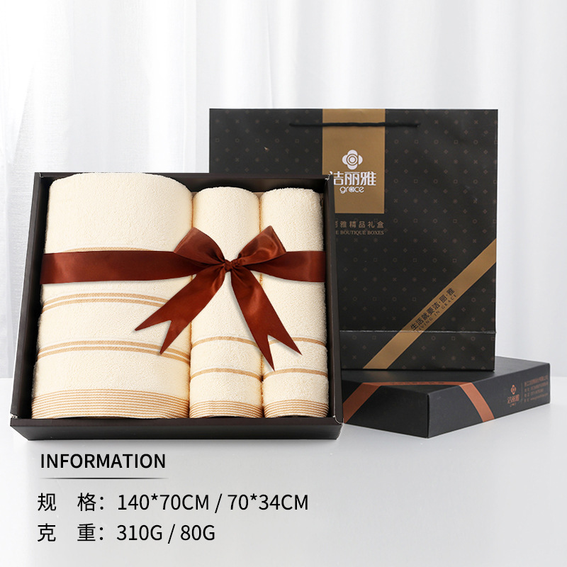 Jieliya полотенце банное полотенце набор из трех частей с подарочным подарком из хлопка оптовая вышивка с логотипом подарочной коробки
