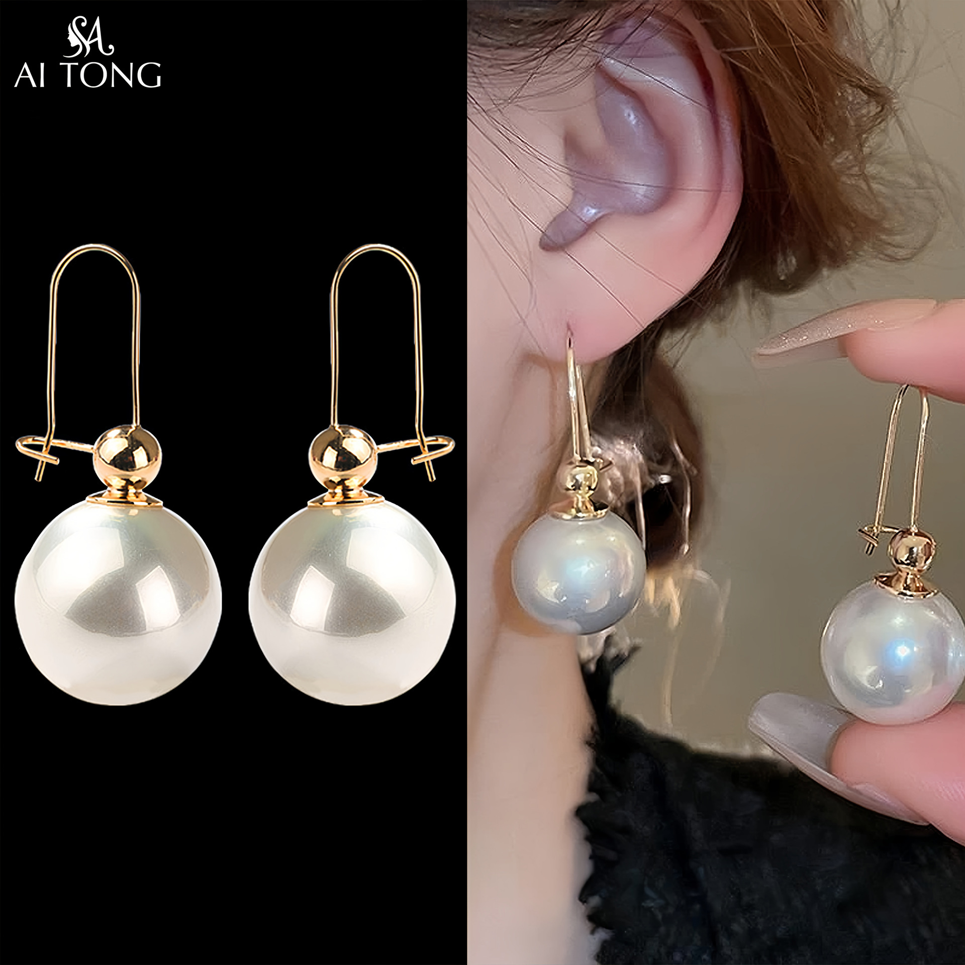 Главная страница > Ювелирные изделия Aitong, персонализированные женские модные позолоченные серьги в корейском стиле с маленькой лампочкой и жемчугом, элитные элегантные серьги, серьги