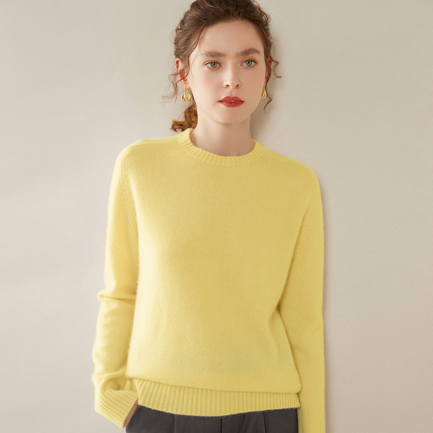 Женский свитер из 100% чистого кашемира с круглым вырезом, двойной слой, утолщенный, свободного кроя, вязаная базовая кофта для женщин.