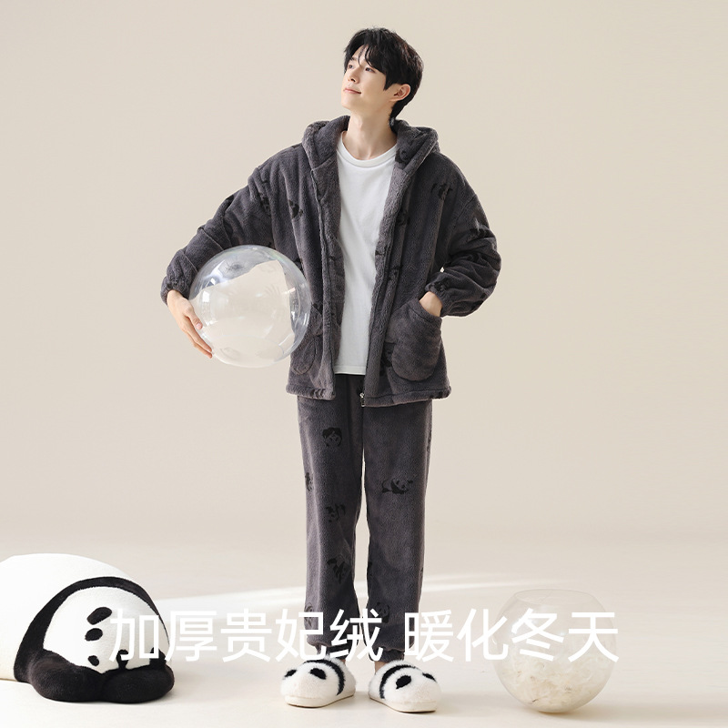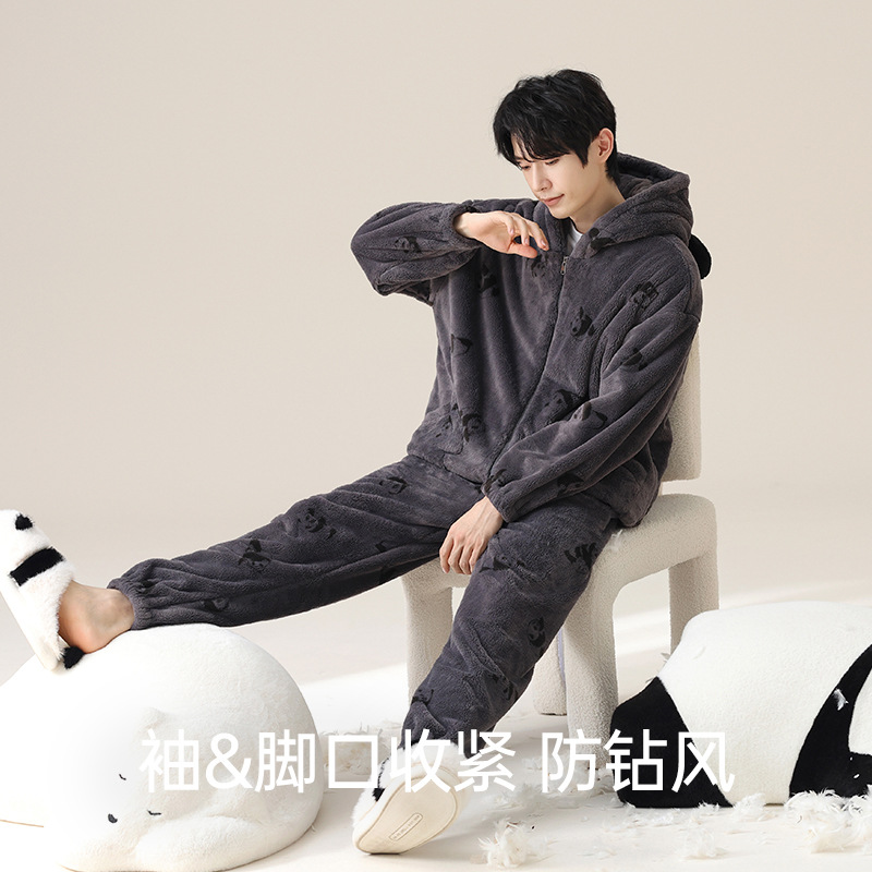 [Теплый бархат] Осенний и зимний мужской коралловый бархат пижама панды с капюшоном теплый домашний костюм