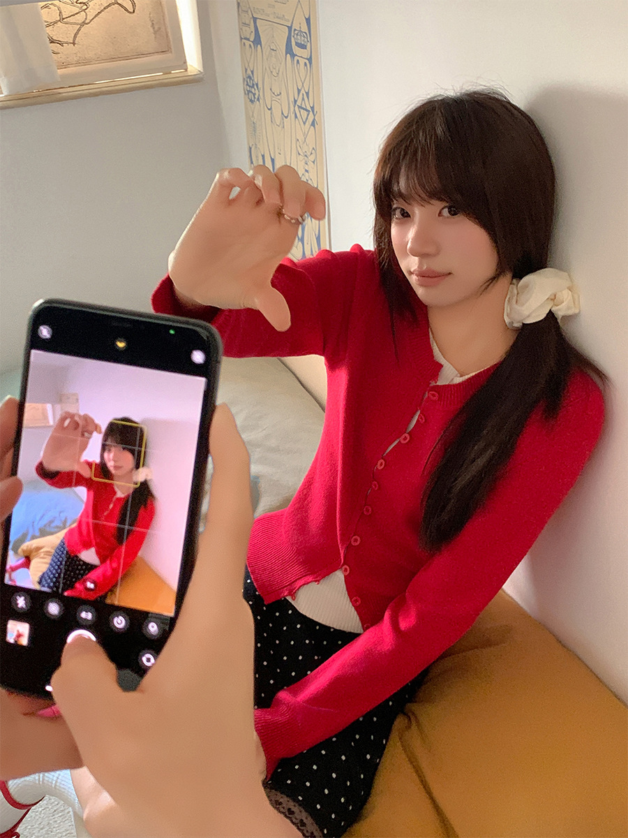 Главная страница > Рождественский красный искусственный вязаный кардиган из двух частей с длинными рукавами, женская осенне-зимняя внутренняя одежда, милая сексуальная многослойная куртка с круглым вырезом, топ