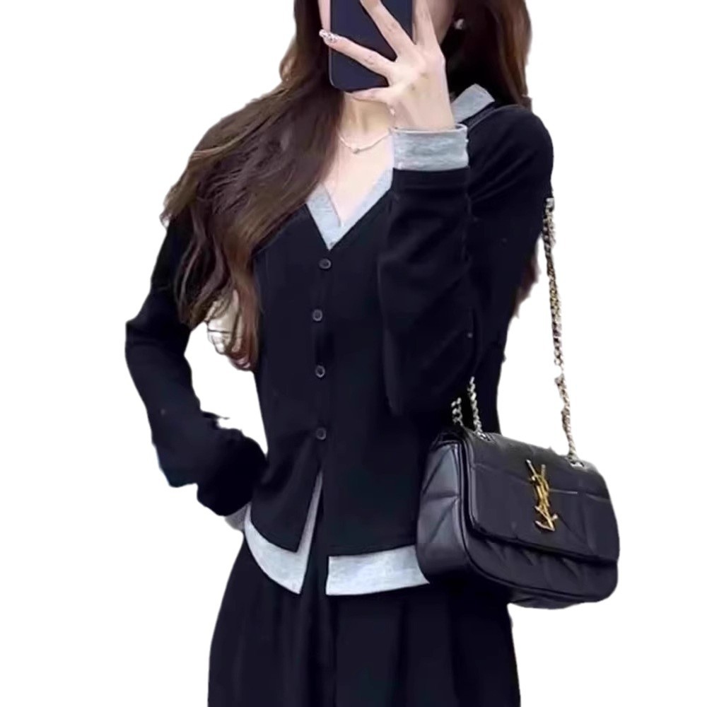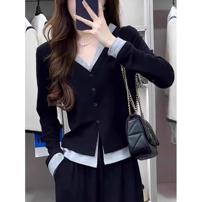 Главная страница > Трансграничные волосы из поколения в поколение осенью и зимой Модаль поддельные две футболки с V-образным вырезом с длинными рукавами