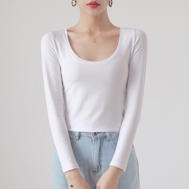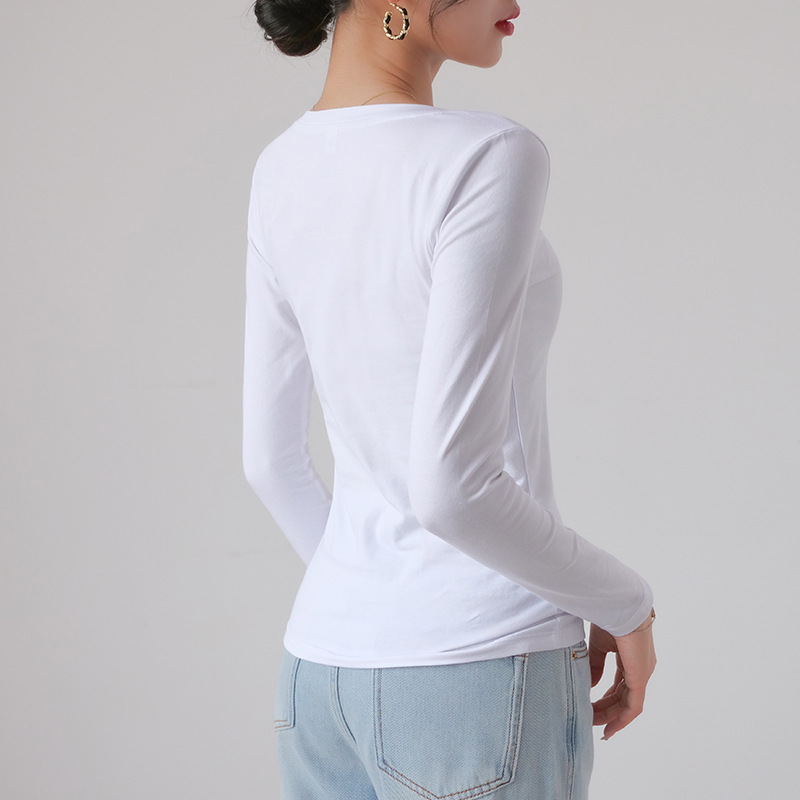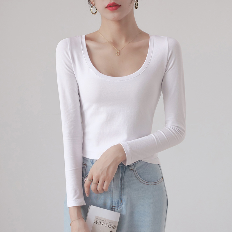 Главная страница > Белая женская футболка с длинным рукавом, базовый слой из чистого хлопка в корейском стиле, новинка весны-осени 2025, элегантная и подходящая для работы.