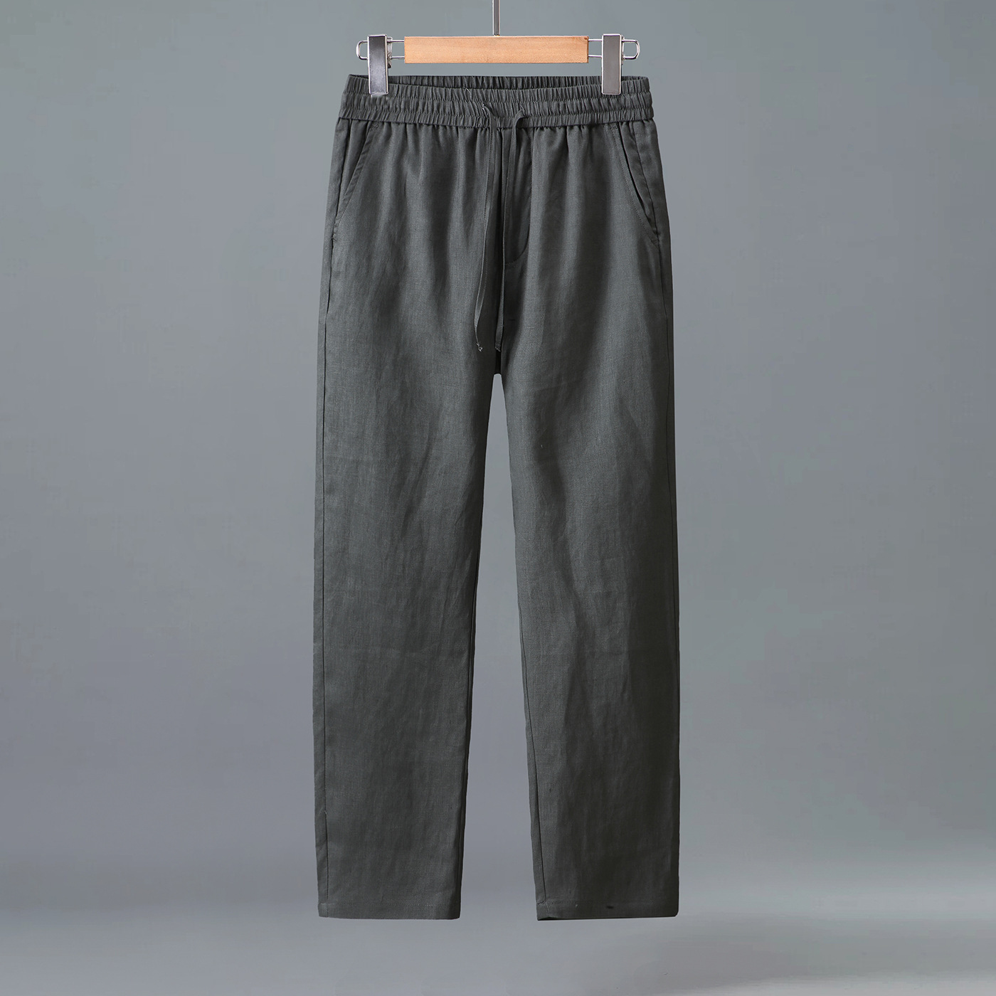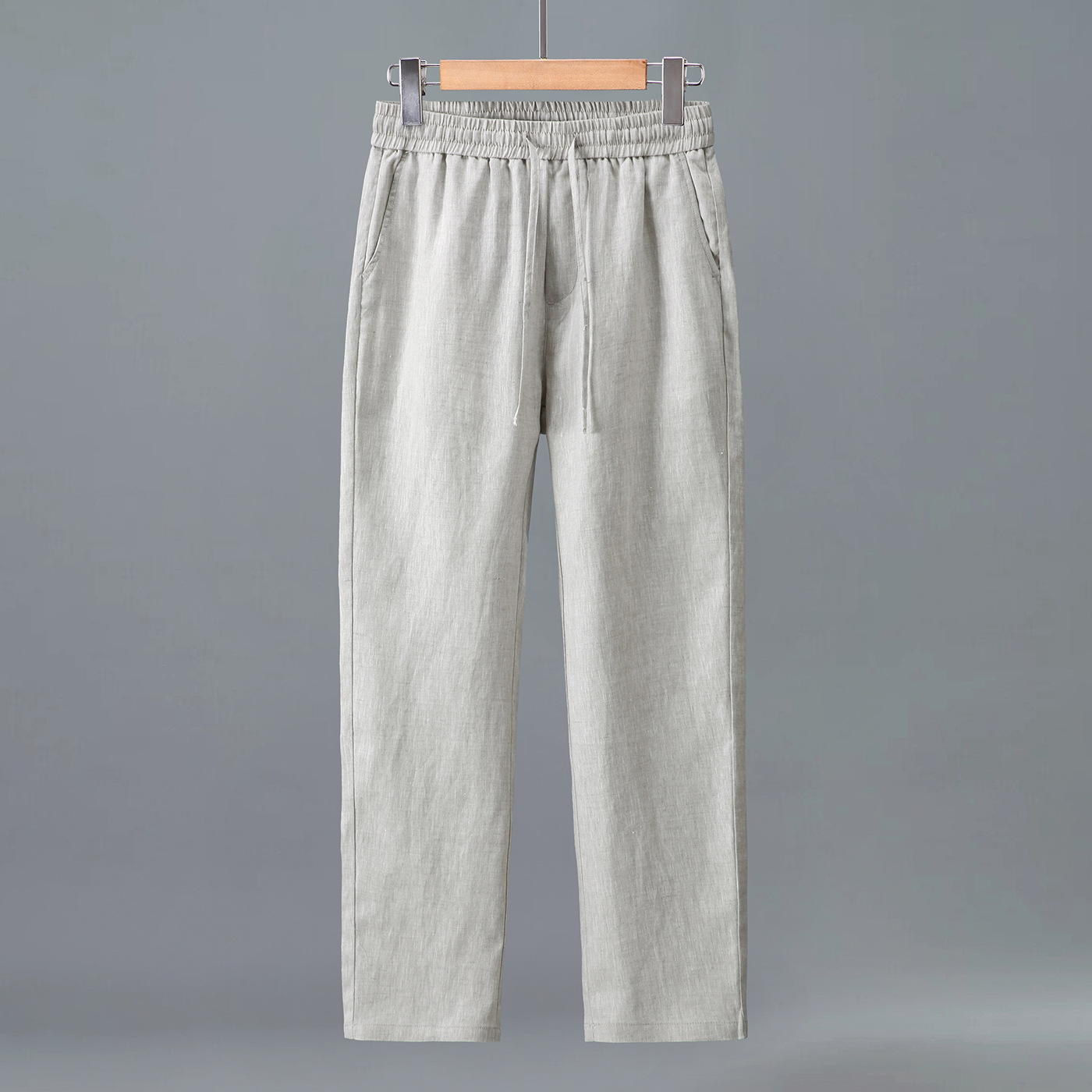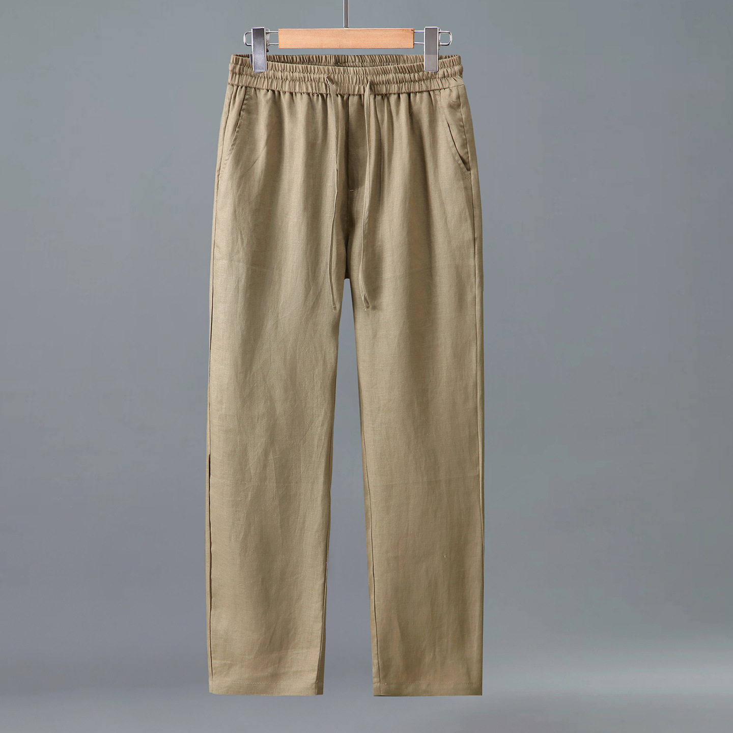 Главная страница > 3047 Льняные повседневные деловые брюки мужские с эластичным поясом, прямые, на шнурке, свободные, тонкие, дышащие, повседневные мужские брюки