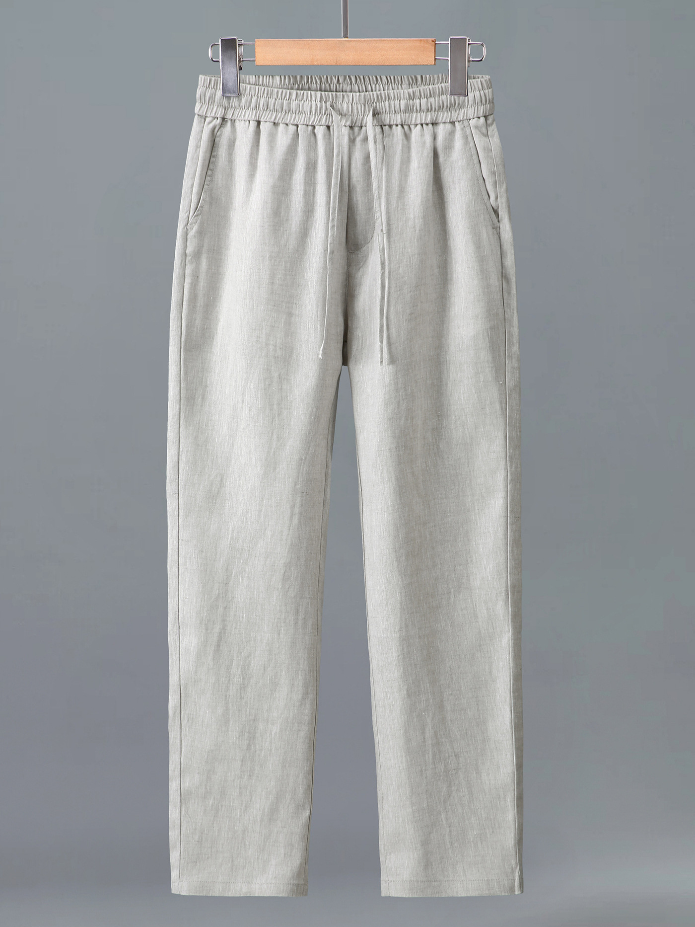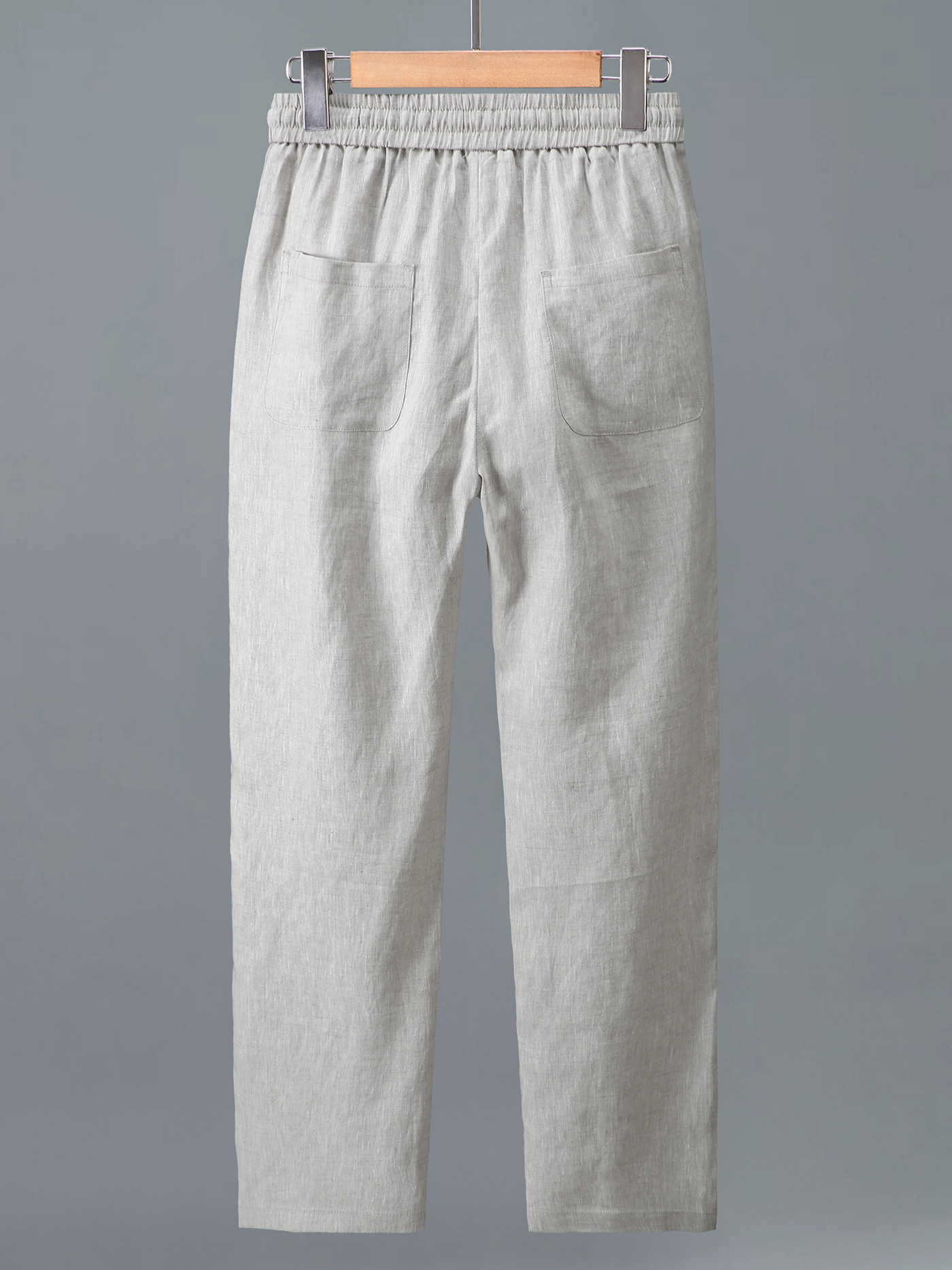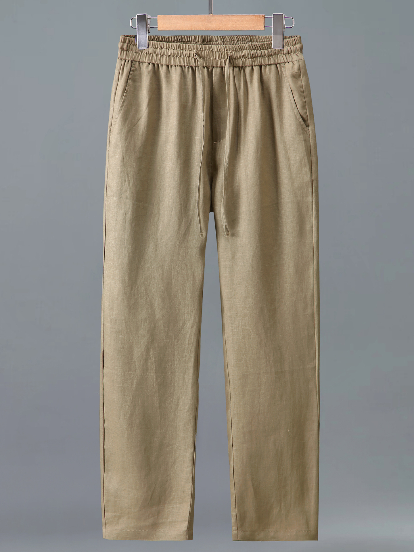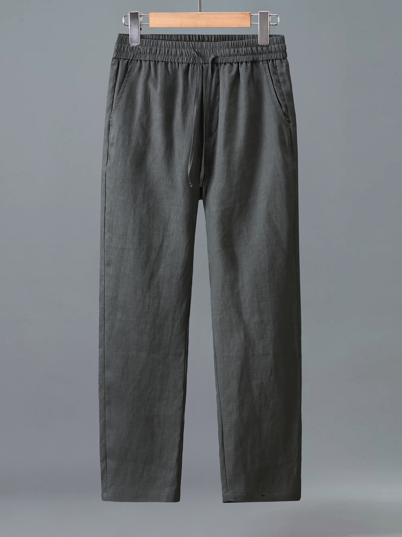 Главная страница > 3047 Льняные повседневные деловые брюки мужские с эластичным поясом, прямые, на шнурке, свободные, тонкие, дышащие, повседневные мужские брюки