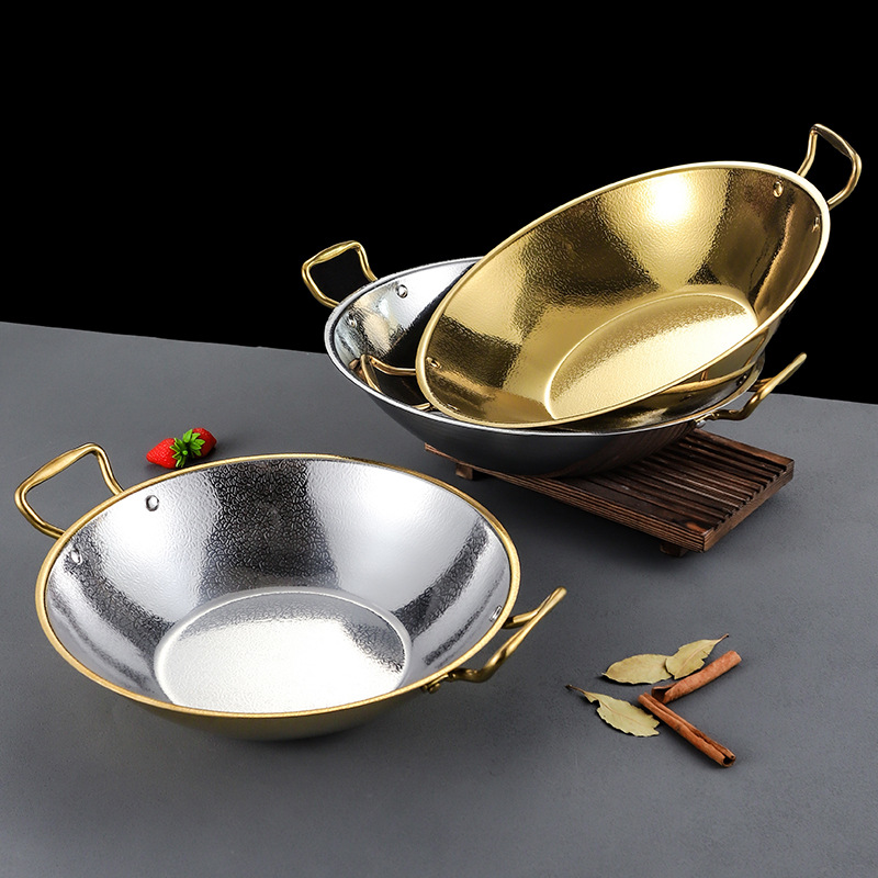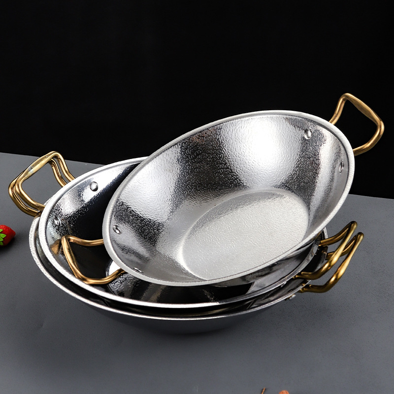 Главная страница > Новая кастрюля для супа с узором снежинки, утолщенная сухая кастрюля, коммерческая кастрюля, бытовая миска с плоским дном, тарелка для блюд, новая золотая кастрюля с двумя ушками