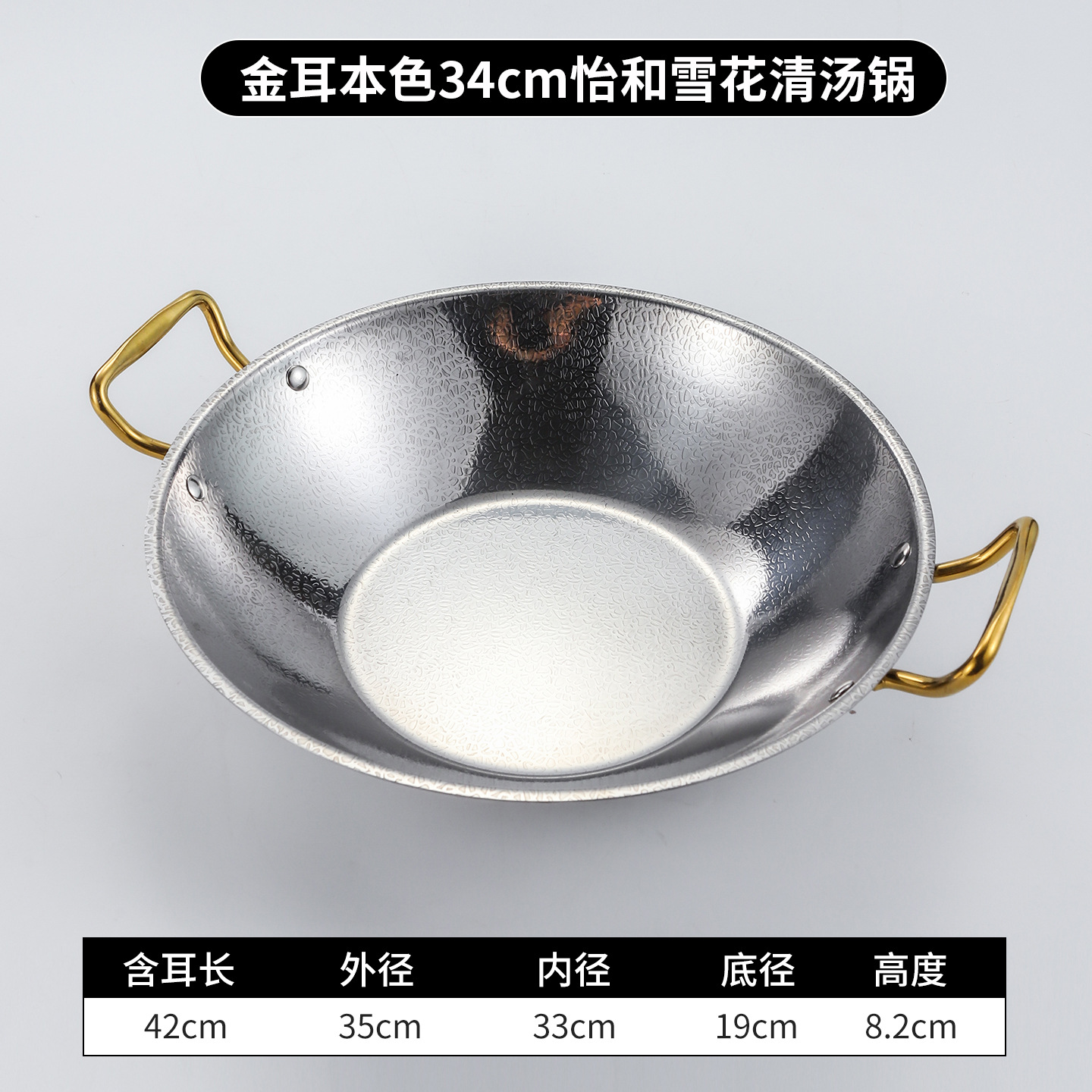 Композитный стальной горшок для мандариновой утки со снежинкой, внутренний диаметр 40 см, натуральные золотые уши