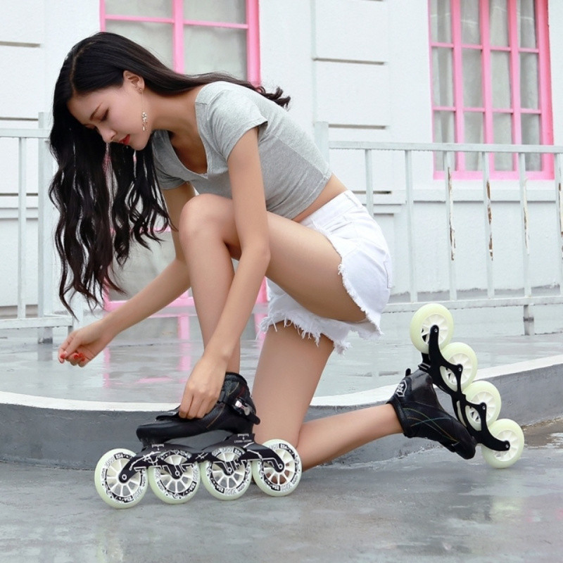 Q9DZICO Скользящие ботинки Большое колесо Профессиональная обувь для взрослых мальчиков и девочек Регулируемый углеродное волокно на роликовых коньках