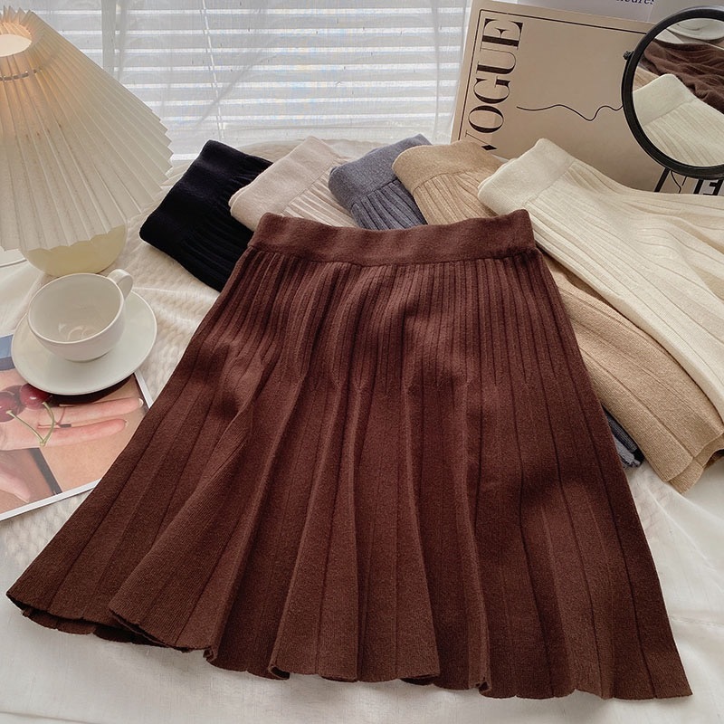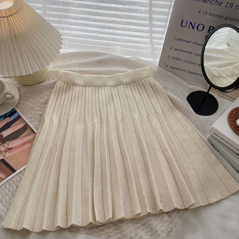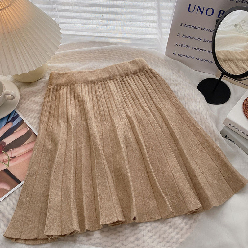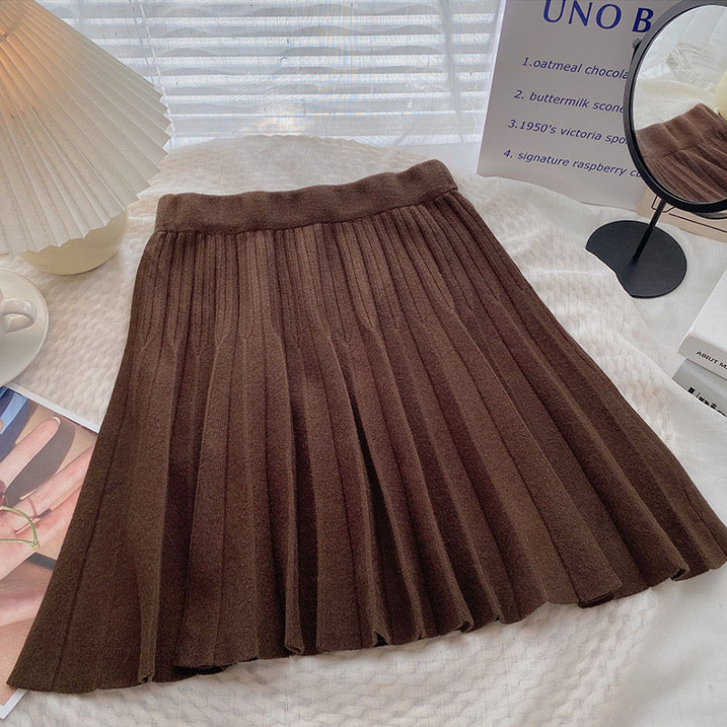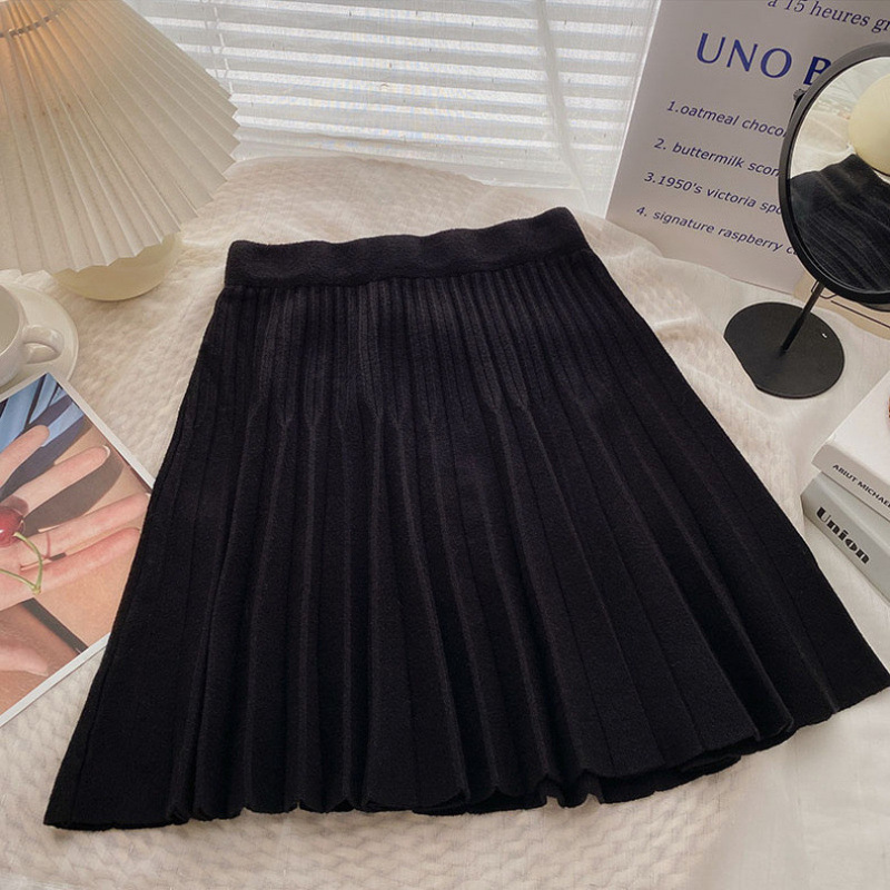 Главная страница > Трикотажная юбка женская осень-зима 2024 новый маленький человек с высокой талией, тонкая плиссированная юбка