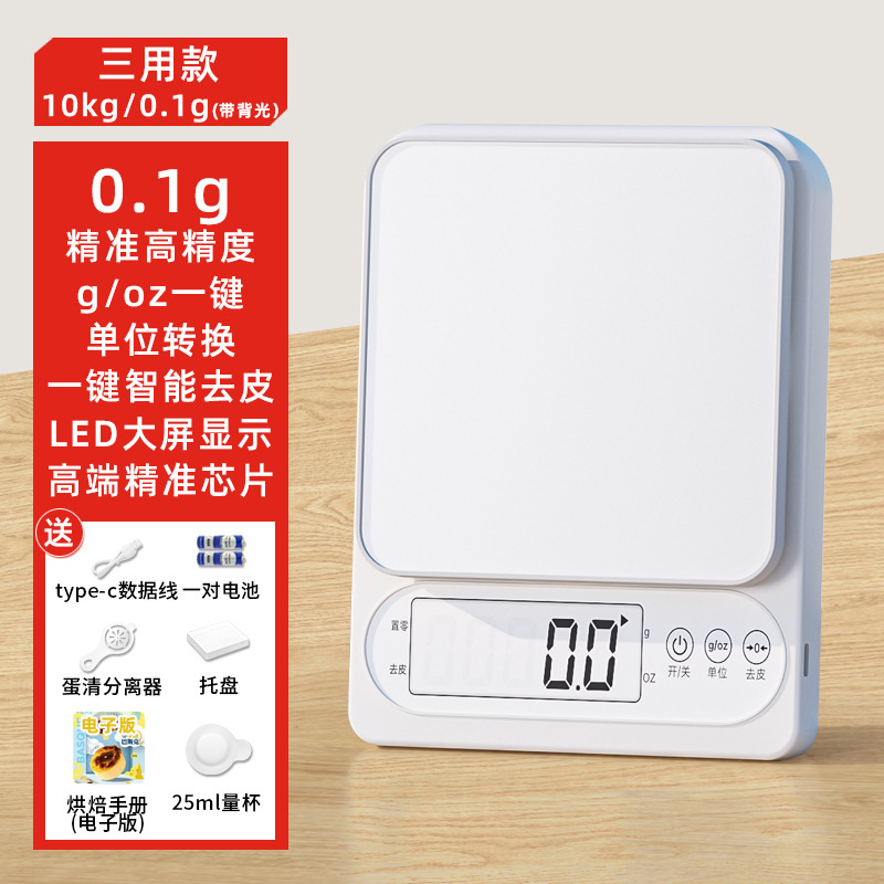 [Зарядка/подключение/двойные батареи] Версия для трехкратного использования, 10 кг/0,1 г (поставляется с подносом + шестью роскошными подарками)