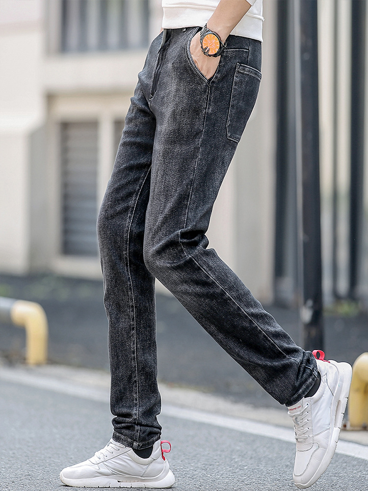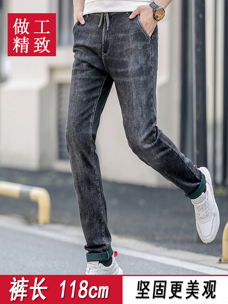 Главная страница > Осенне-зимние высокие удлиненные джинсовые брюки 118 см, эластичные утолщенные модные брюки с высокой талией для молодых мужчин 2099