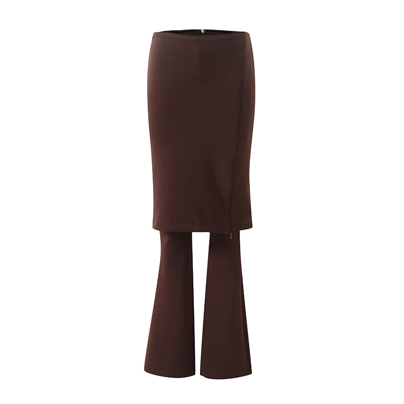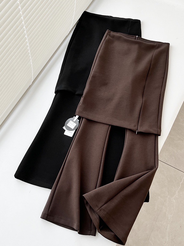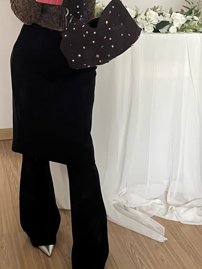 2025 Осень/Зима Новые Меладе Эластичные Утягивающие Двухслойные Вязаные Юбка-клеш с Разрезом и Брюки для Женщин.