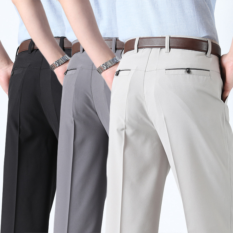 Главная страница > Мужской деловой повседневный костюм из ледяного шелка, без глажки, летние тонкие повседневные брюки для среднего и пожилого возраста, свободные прямые, высокая талия, глубокая промежность