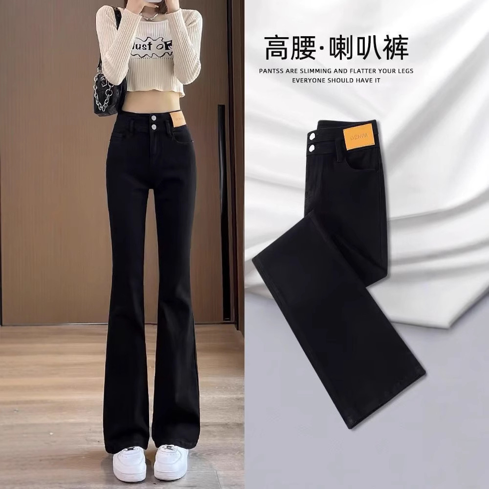 Главная страница > Черные расклешенные брюки женские весна и осень 2025 новые взрывные модели с высокой талией