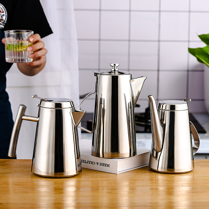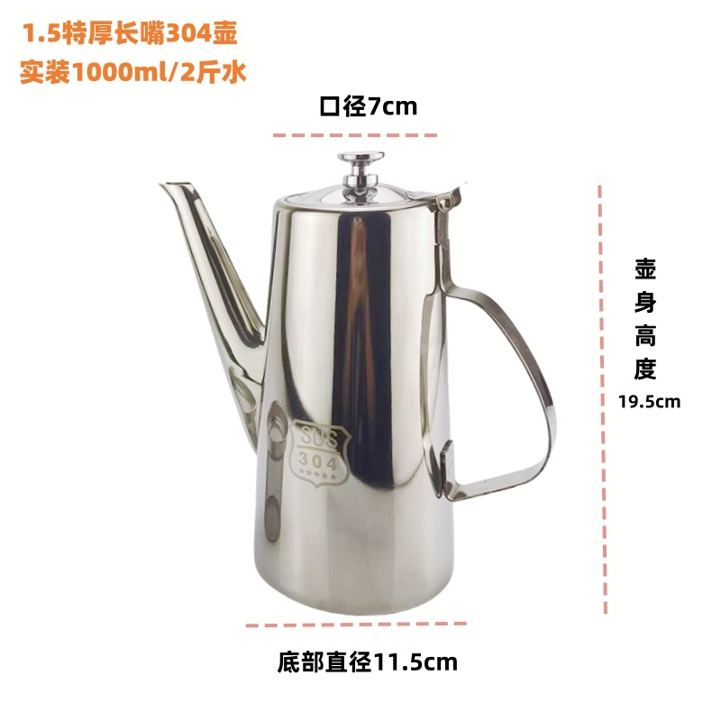 Главная страница > Утолщенный чайник из нержавеющей стали с плоской крышкой холодный чайник Ресторан чайник с длинным ртом плюс суп горшок