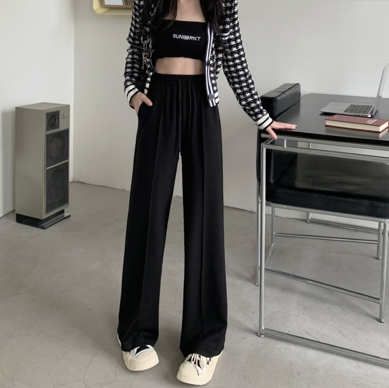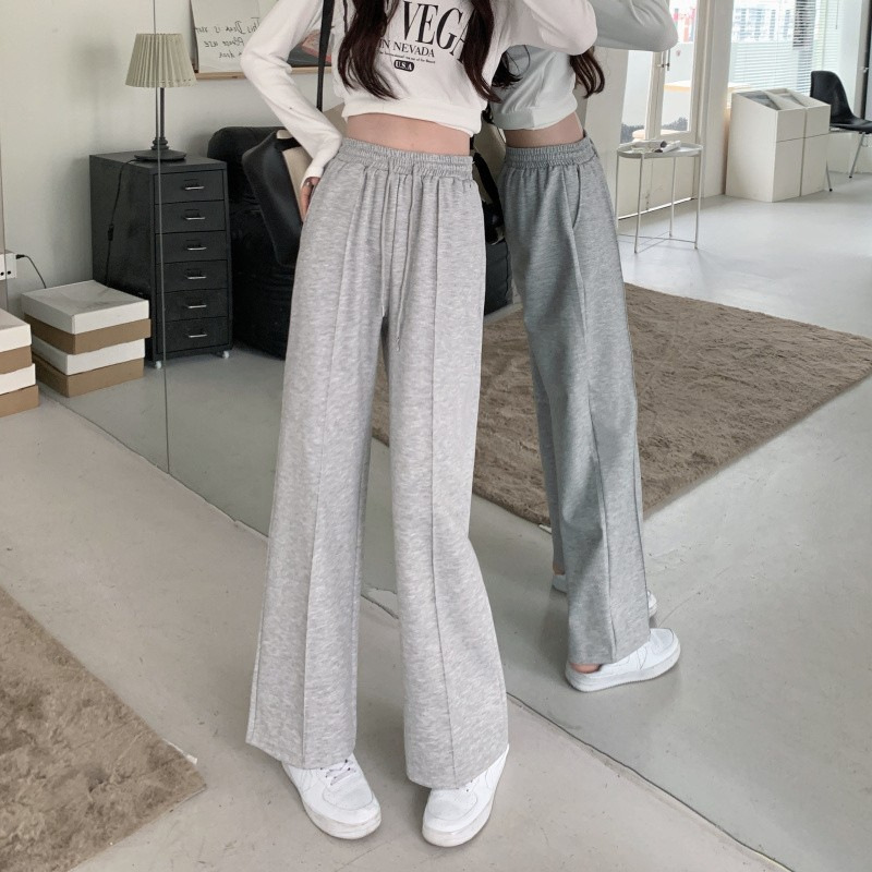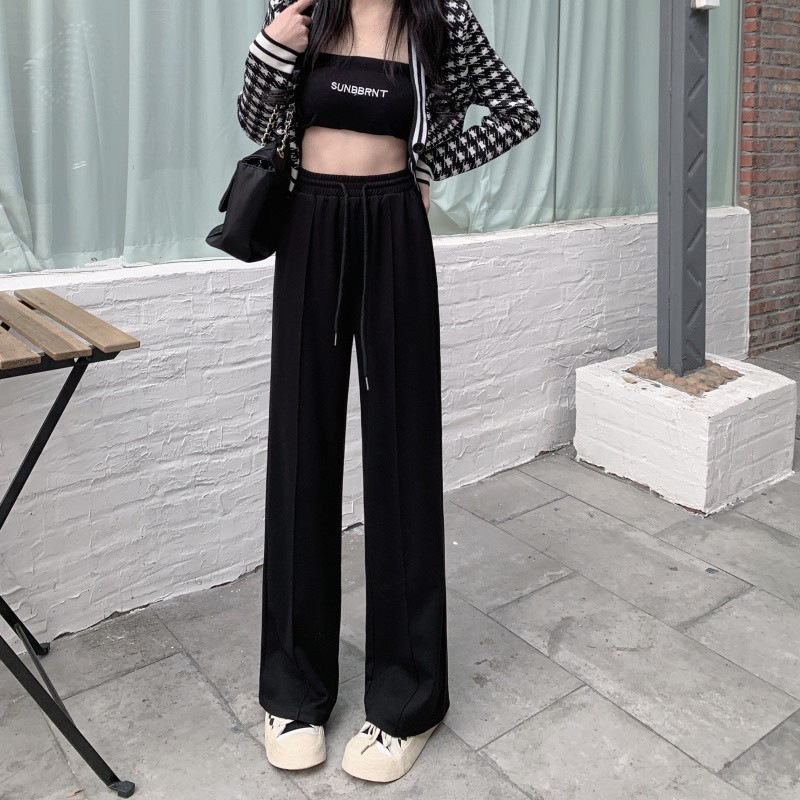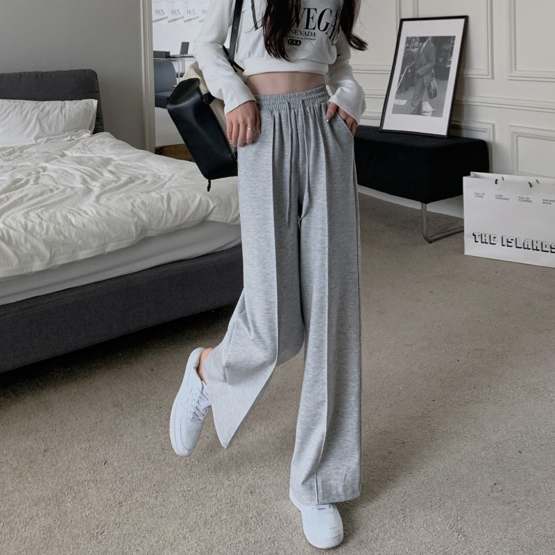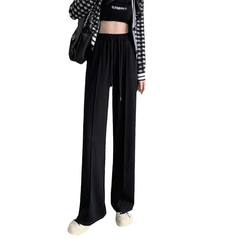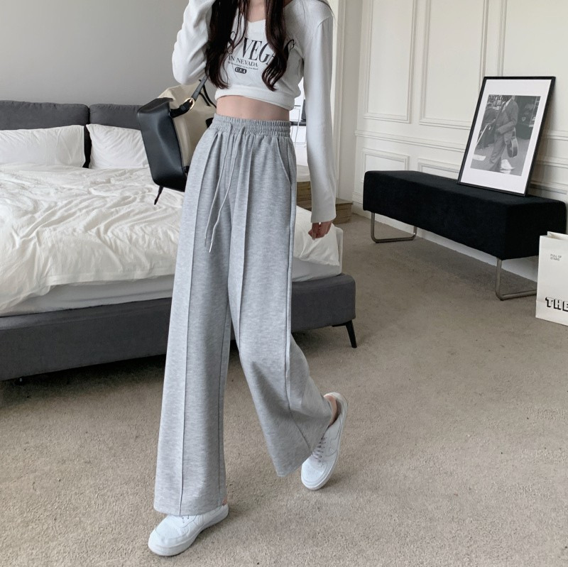 Главная страница > Весенне-осенние новые серые спортивные штаны, женские брюки с широкими штанинами, свободные с высокой посадкой, повседневные Прямые модные брюки с драпировкой и завязками для похудения