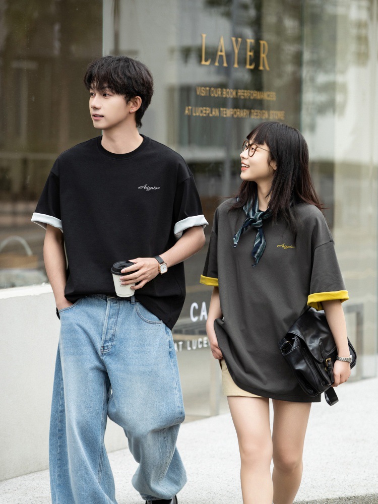 Главная страница > Легкая роскошная футболка с короткими рукавами и контрастной вышивкой «Старые деньги», мужская летняя свободная модная брендовая повседневная футболка с половиной рукавов для пар q