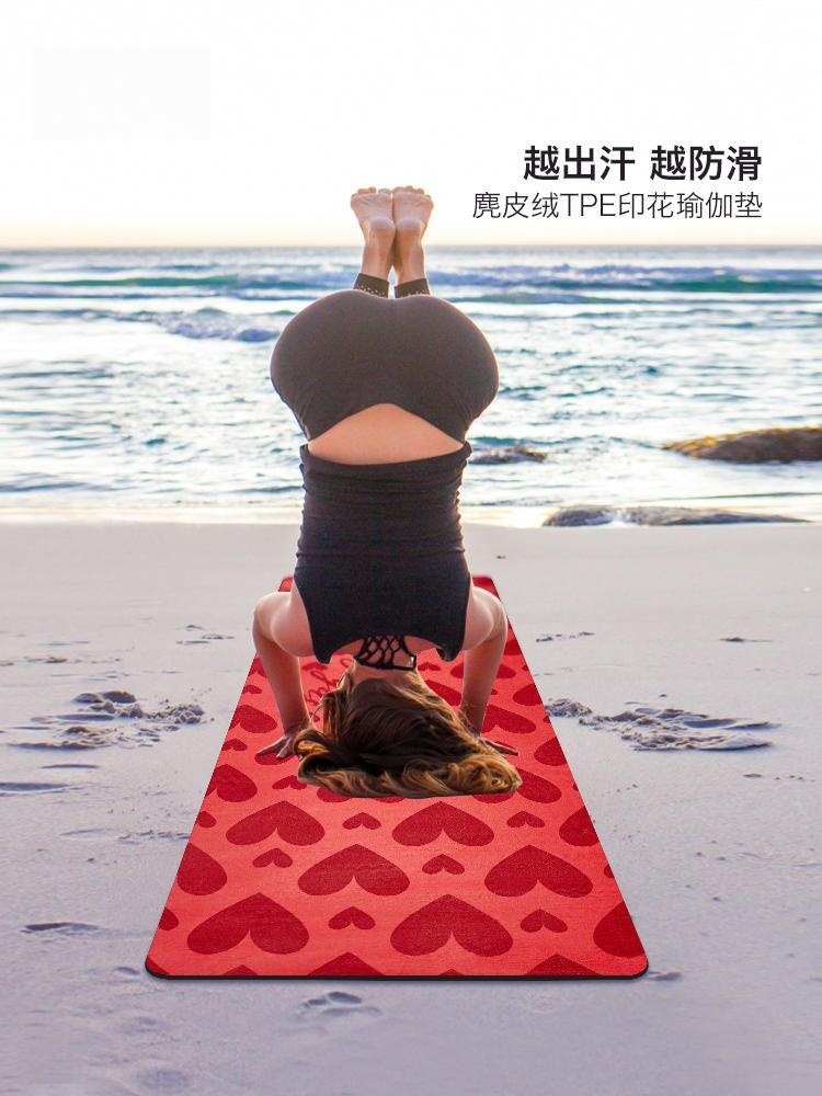 Коврик для йоги из ТПЭ с замшевой печатью, бытовой утолщенный нескользящий износостойкий простой детский коврик для танцев и йоги