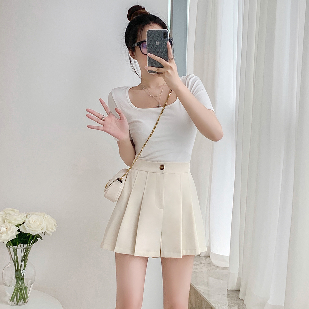 Главная страница > Короткие плиссированные Костюмные шорты, женские летние тонкие подходящие повседневные брюки А-силуэта с высокой талией и широкими штанинами