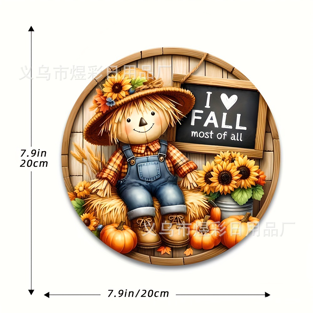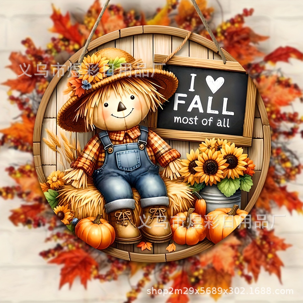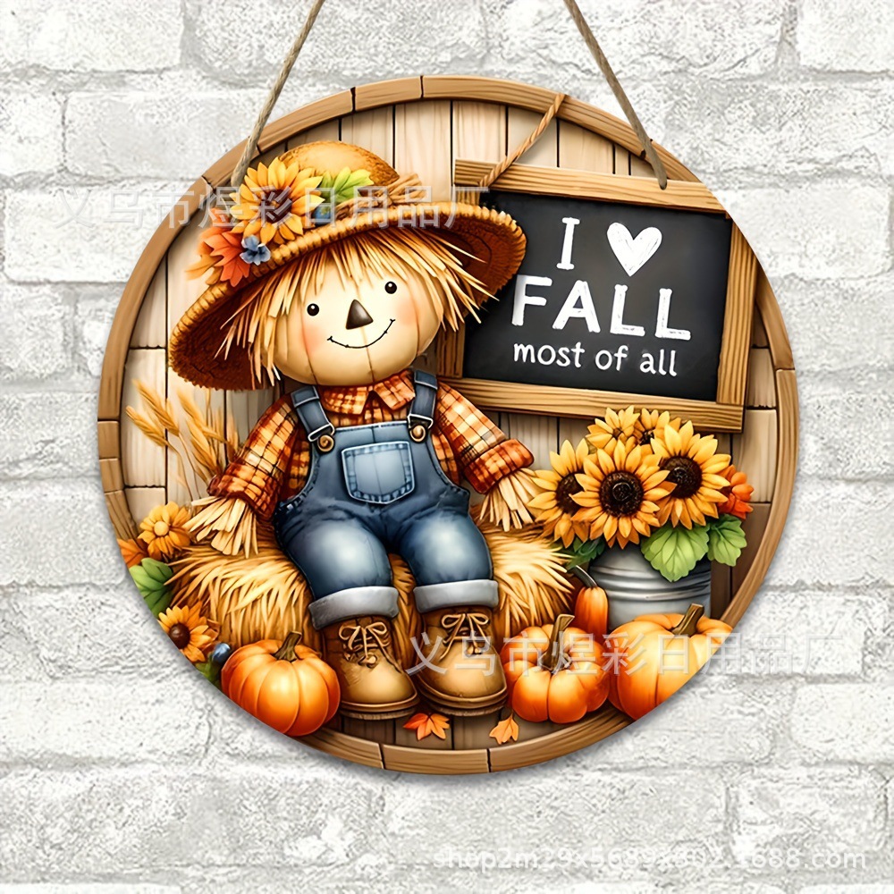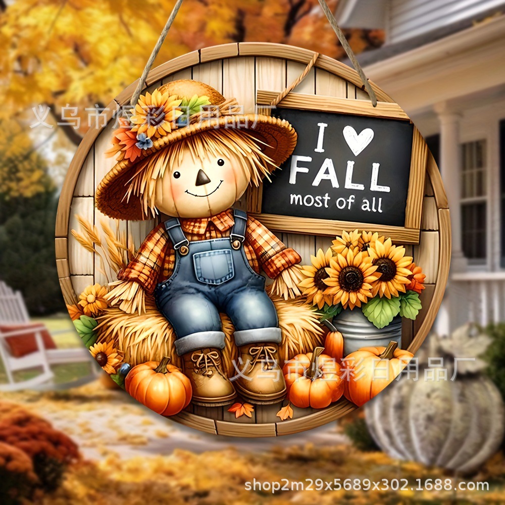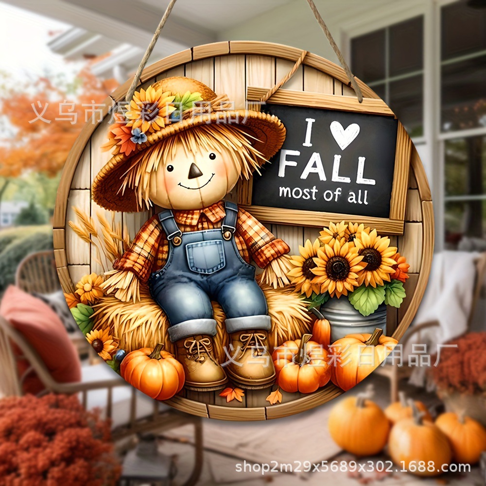Очаровательное чугало приветствуют вывески круглые деревянные осенние декоративные двери стены крыльцо сад деревенский фермерский стиль