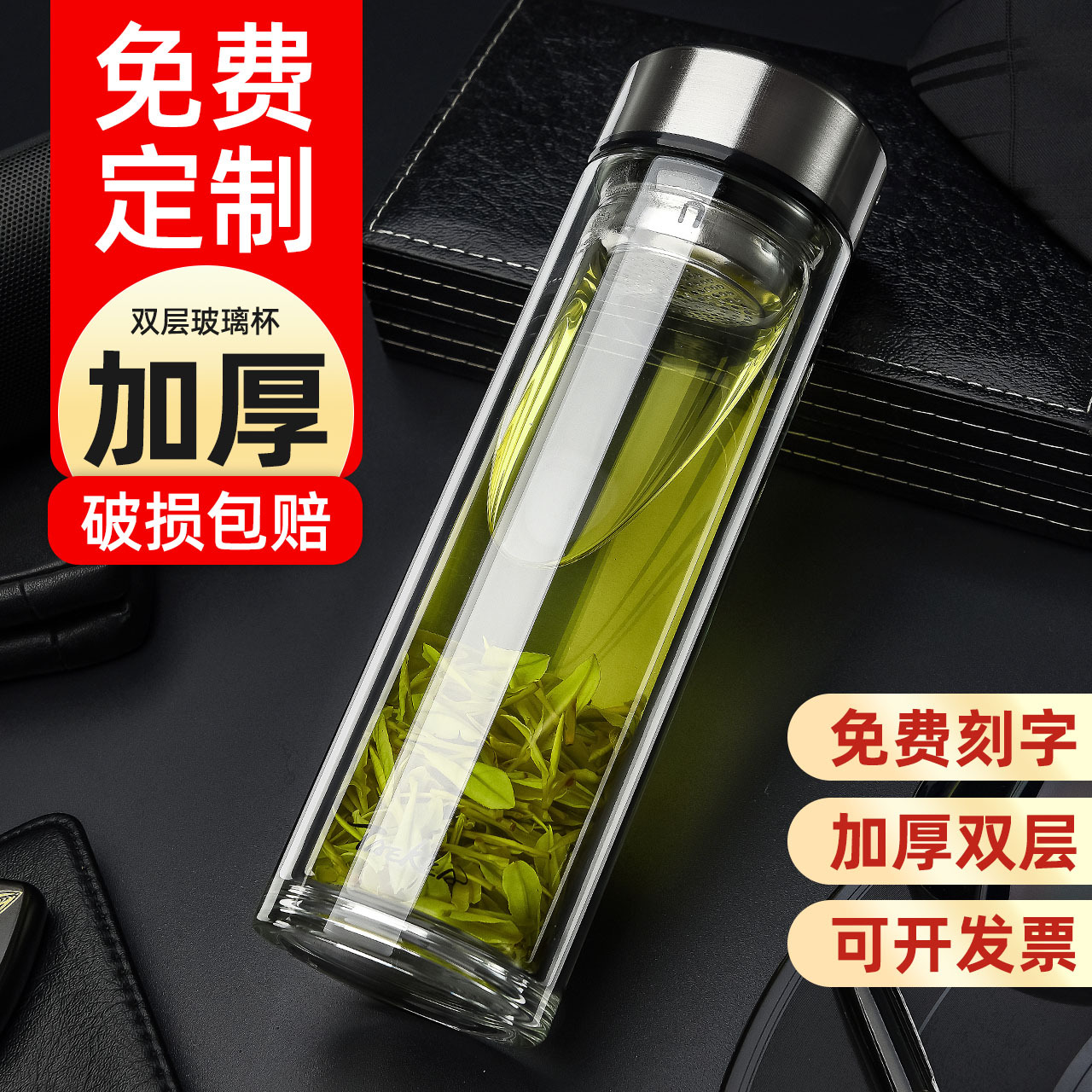 Главная страница > Подарочная чашка большой емкости из двойного стекла прозрачная боросиликатная деловая чайная чашка печать рекламная чашка печать логотипа