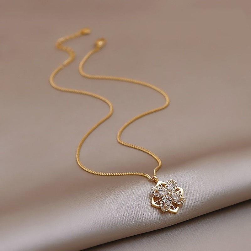 Главная страница > Французский стиль Элегантный простой золотой вращающийся четырехлистный цветок Холодный стиль Легкая Роскошная цепочка ключицы Европейская и американская тенденция