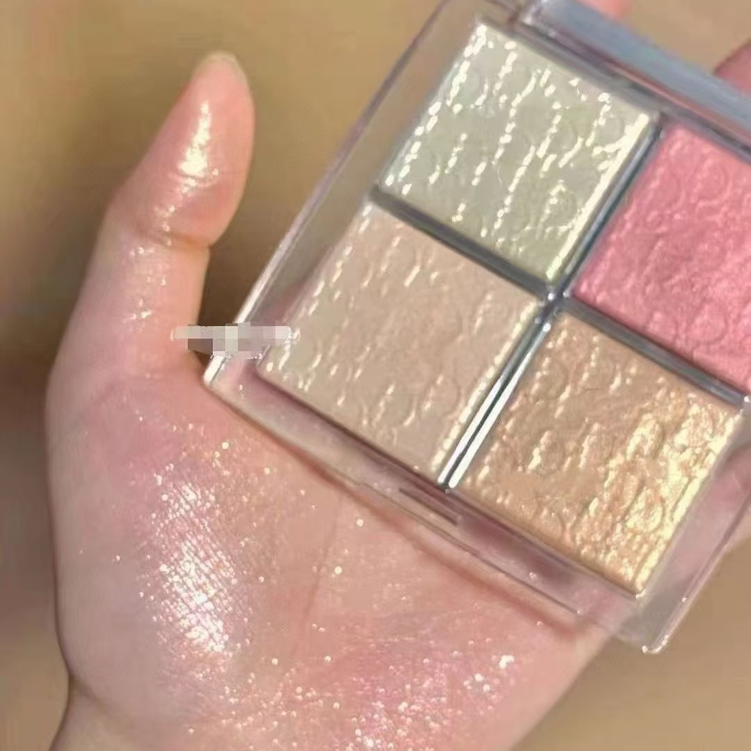 新款外贸彩妆迪家后台浮雕四色高光修容盘哑光提亮闪粉鼻影眼影盘