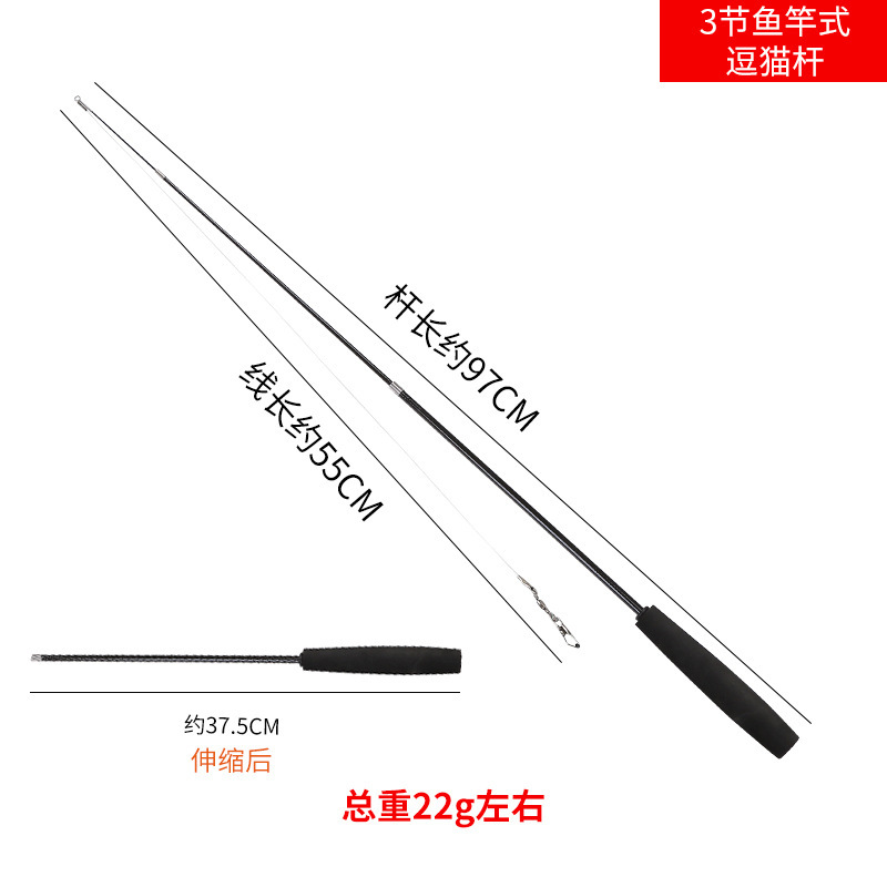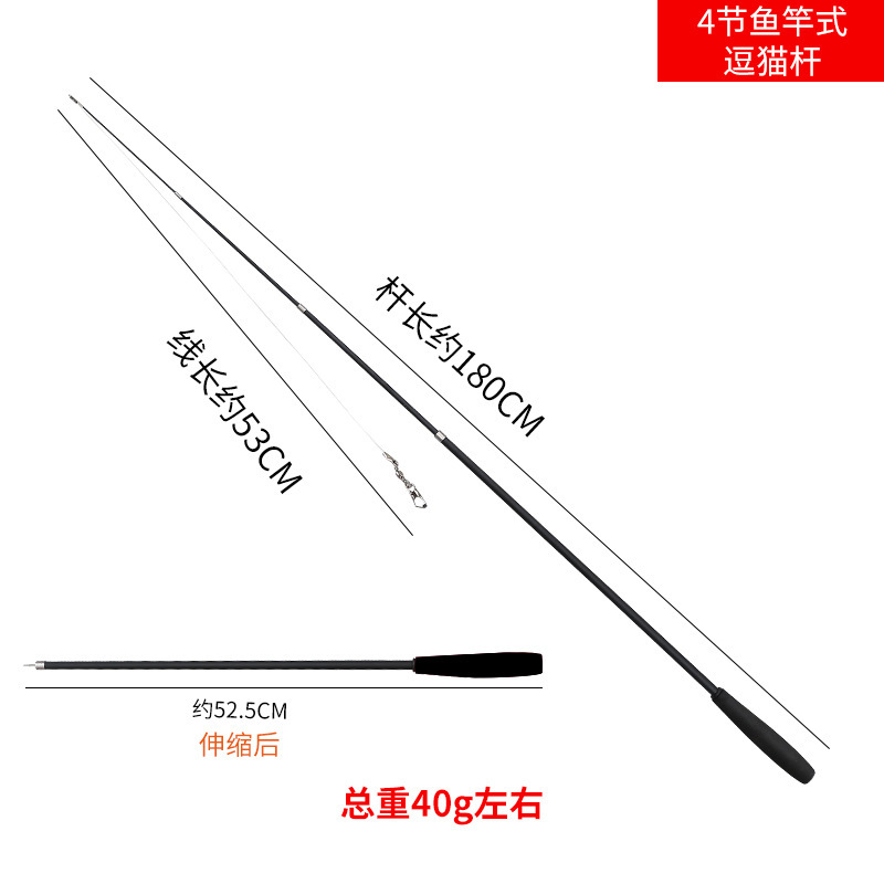 Черная ручка и черный телескопический 4-секционный держатель для игрушки-дразнилки для кошек