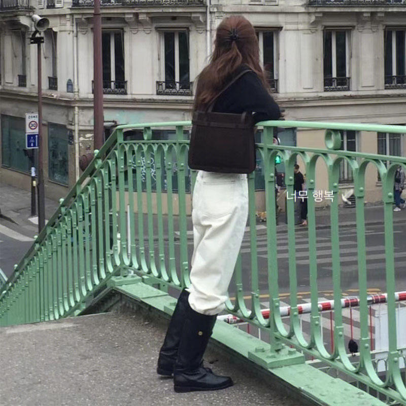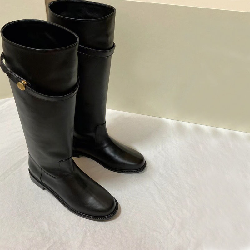 PURPLEMEE маленькие длинные сапоги с золотой пряжкой женские нишевые дизайнерские корейские высокие рыцарские сапоги на плоской подошве Прямые сапоги до колен