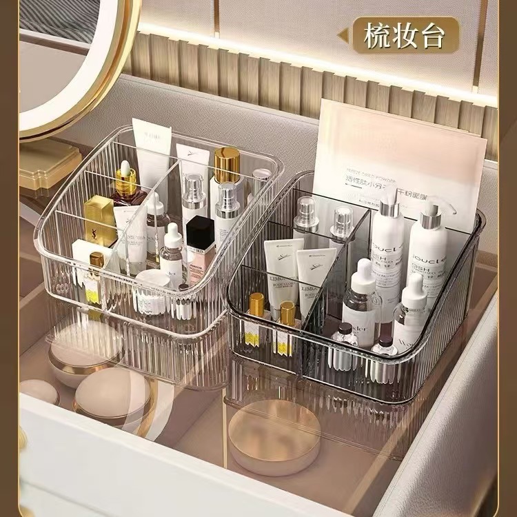 Прозрачный ящик для хранения косметики с пятью отделениями из ПЭТ, организация средств по уходу за кожей, туалетный столик, кисточка для макияжа, помада, отделение для хранения