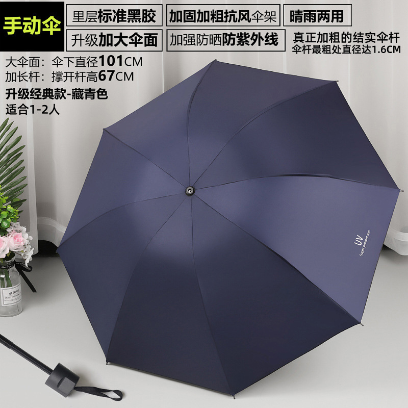 8 костей [Ручное жирное четыре секции] темно-синий UV зонт