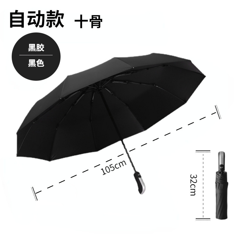 10 ребер [три поколения] черный автоматический зонт