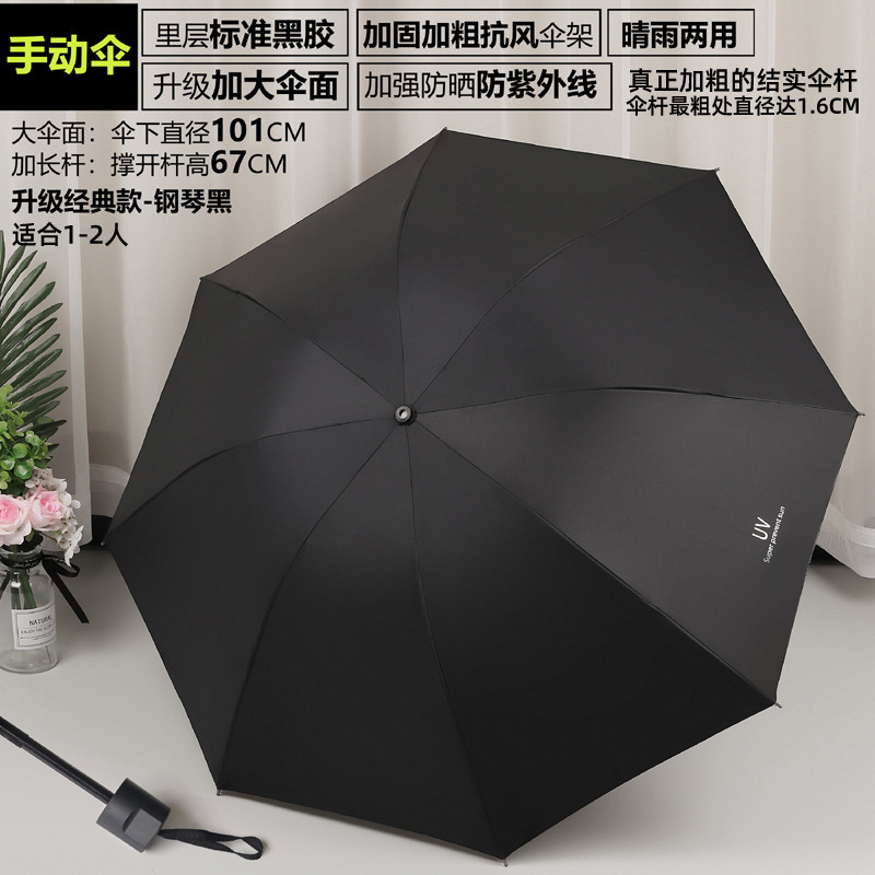 Кость [Ручной утолщение четырех сект] Черный UV зонт