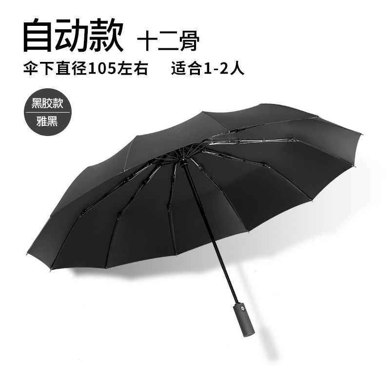 12-ребристый [автоматический] черный зонт