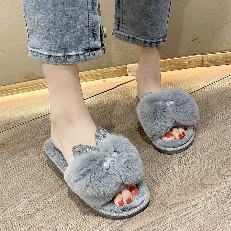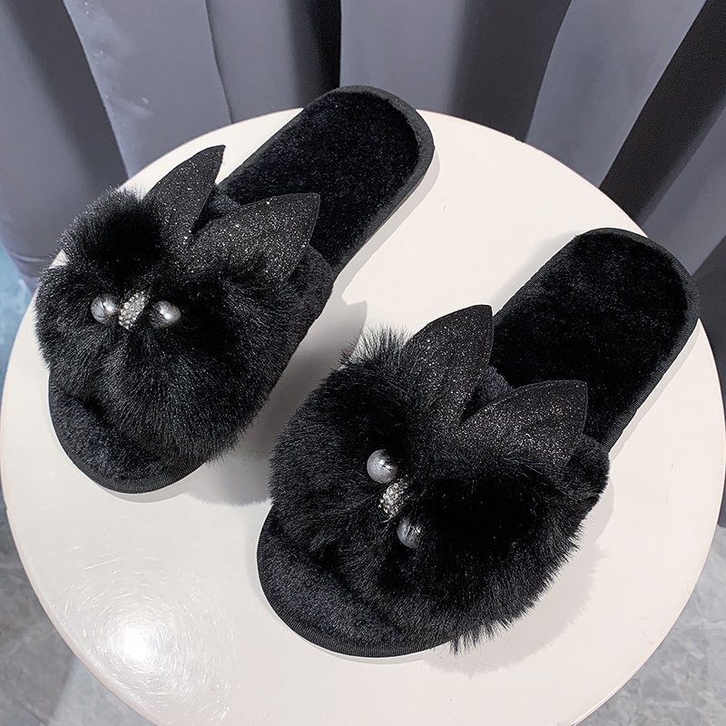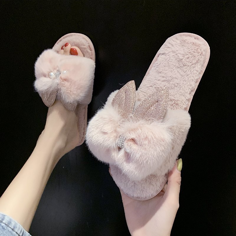 Главная страница > 2022 Новые осенне-зимние домашние хлопковые тапочки, женские домашние пушистые тапочки с жемчужными кроличьими ушками, теплые половые Тапочки