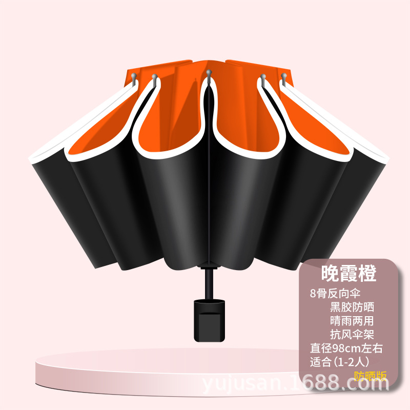 [Ручное открытие] Толстый стержень с 8 косточками, красивый зонт-оранжевый закат