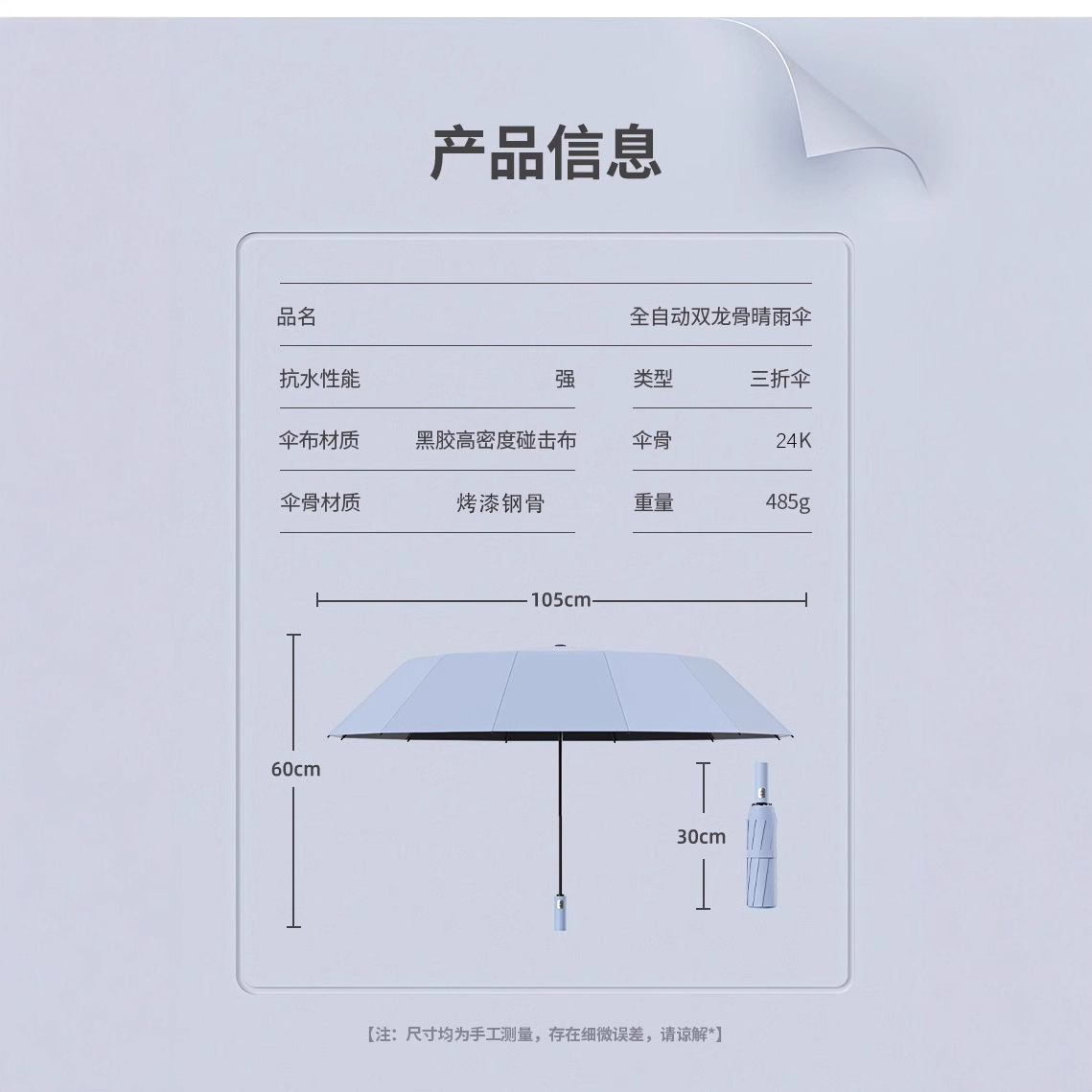 全自动伞男士加大加厚 24骨超大黑胶防晒遮阳伞 晴雨两用雨伞定制