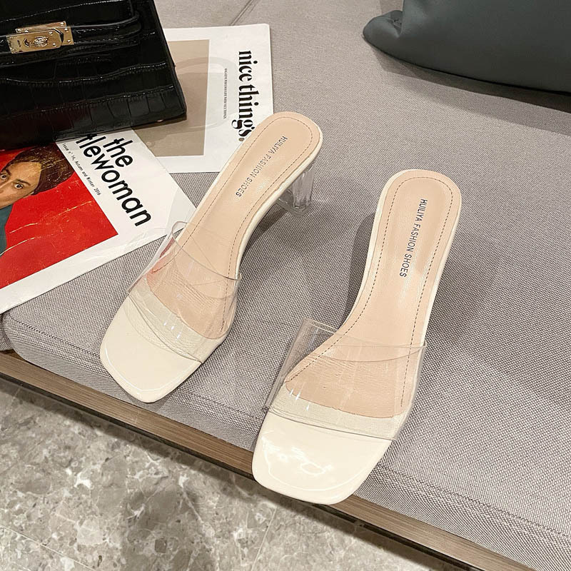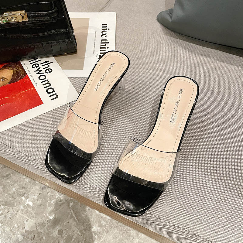 Главная страница > Женские туфли-мюли на высоком каблуке с кристаллами, новинка 2025 года для внешней торговли, босоножки на высоком каблуке для улицы, прозрачный ремешок, корейский стиль 832-1