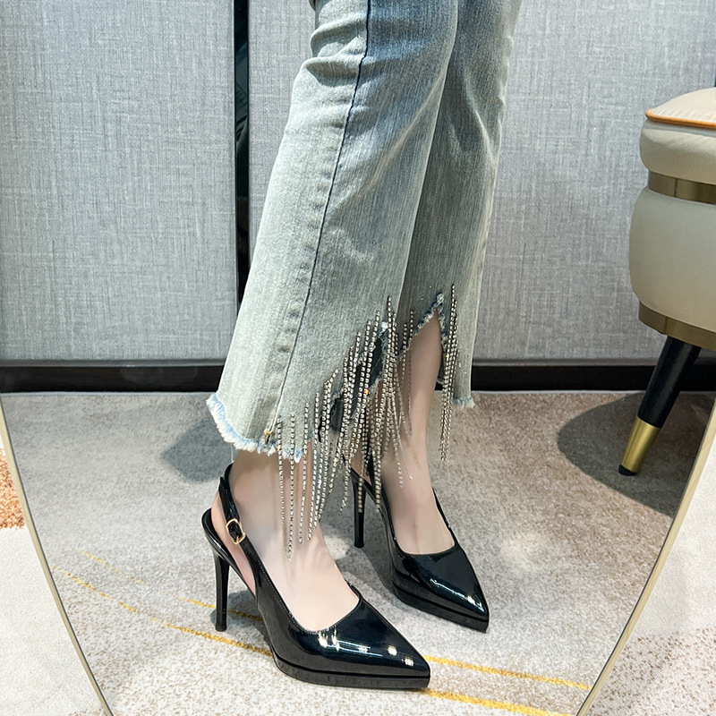 2024 весна и лето новая хрустальная цепочка на высоком каблуке с неглубоким ртом заостренные каблуки