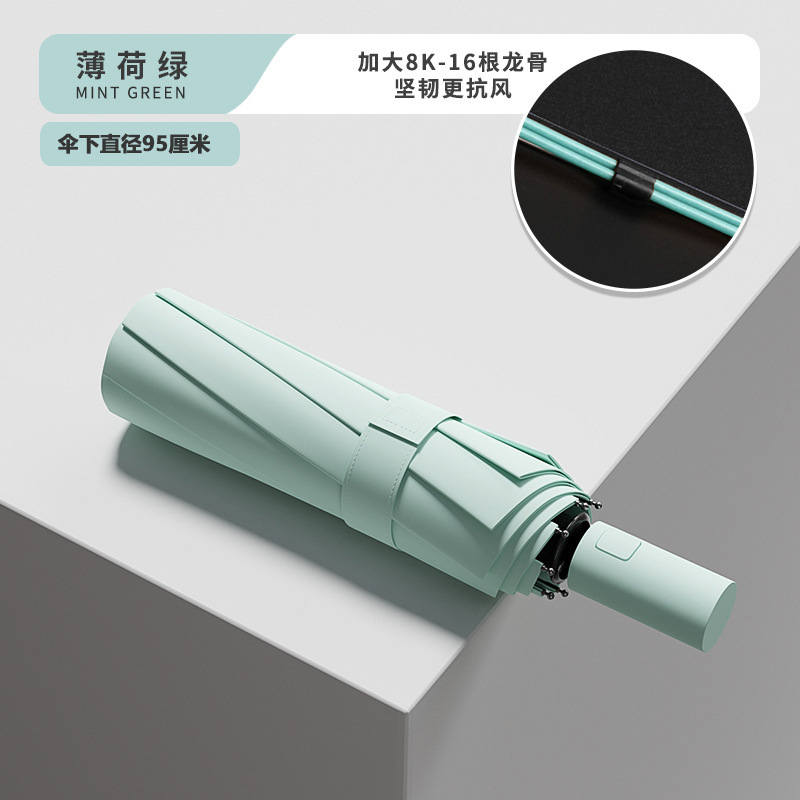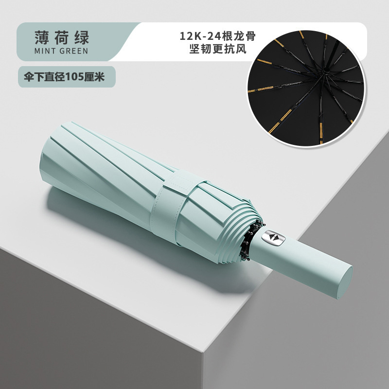 Эквивалентный 24-конусный автоматический армированный солнечный зонт-мятно-зеленый