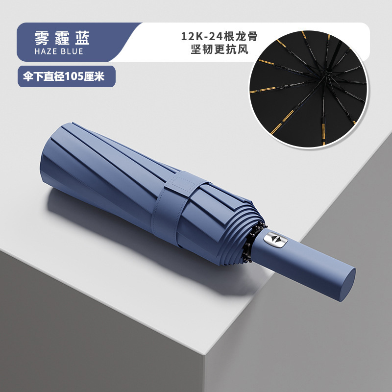 Эквивалентный 24-костяной автоматический армированный солнечный зонт-темно-синий