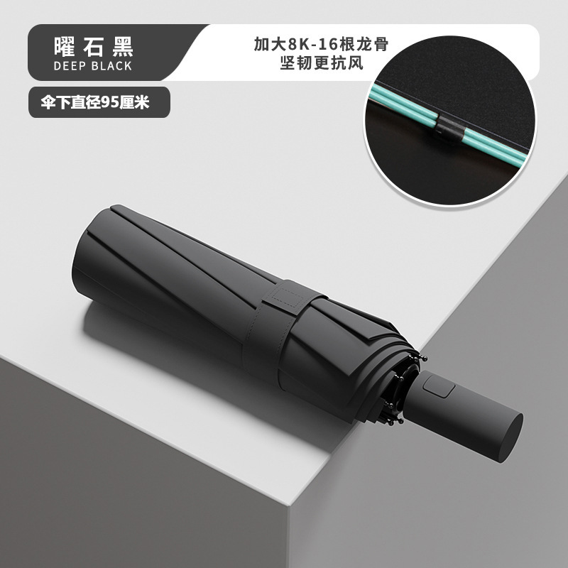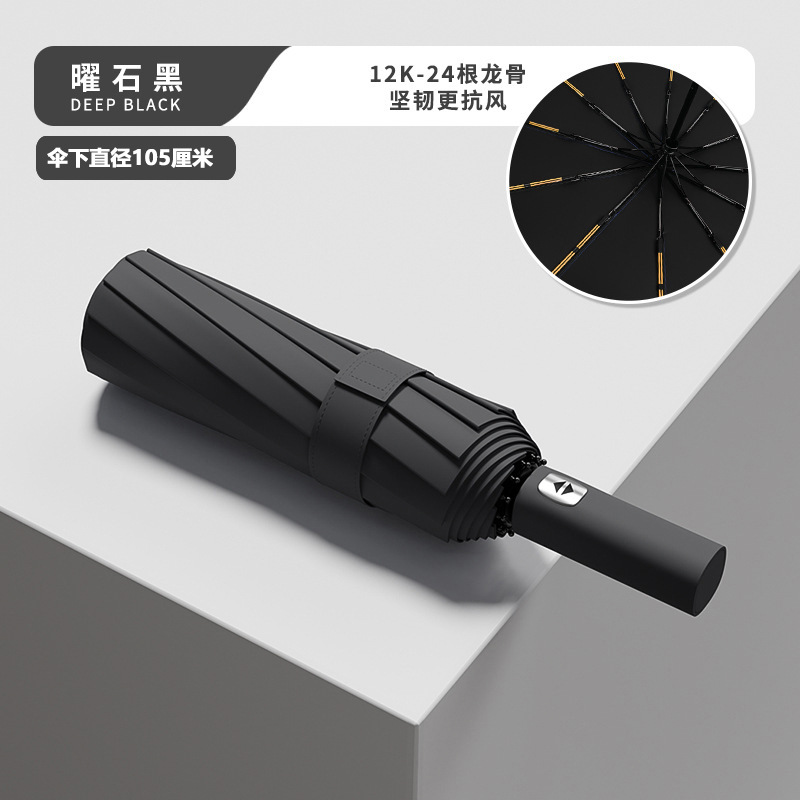 Эквивалентный 24-конусный автоматический армированный солнечный зонт-обсидиан черный