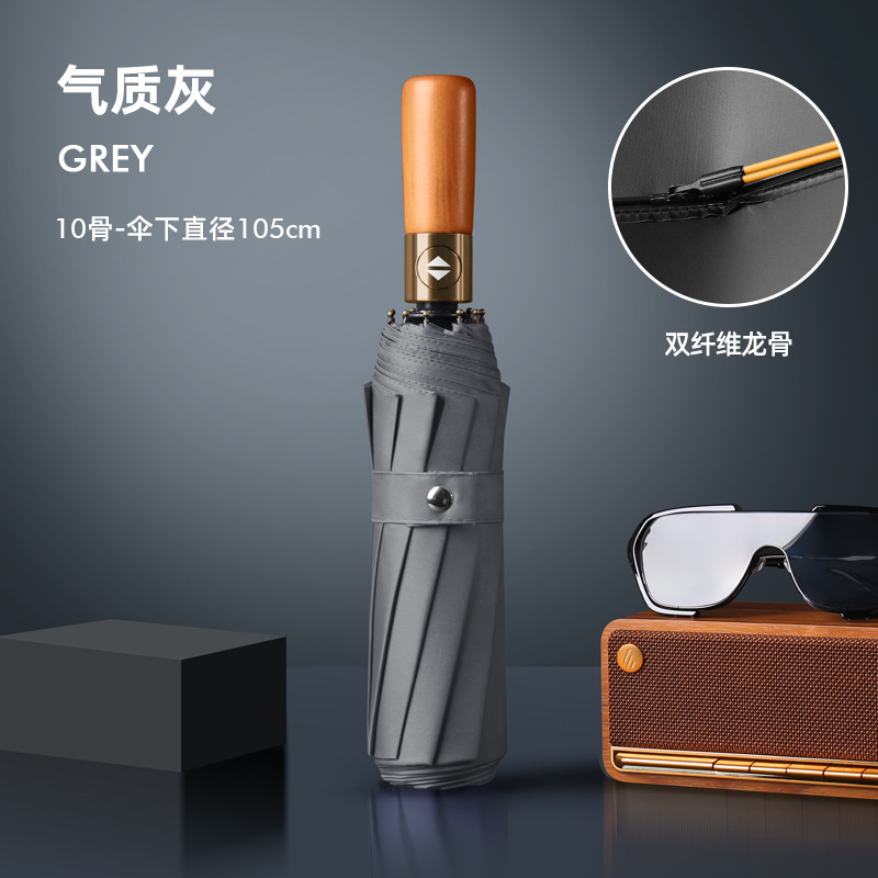 Автоматическая деревянная ручка, медная пряжка 10K, зашифрованная ткань для зонта, утолщенный винил - темпераментно-серый