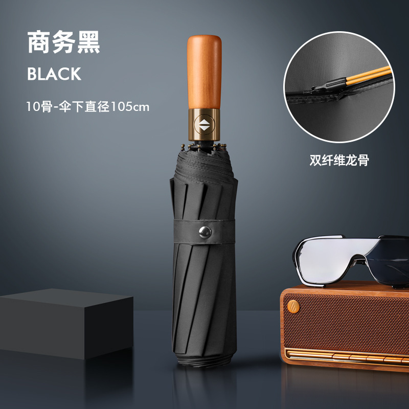 Автоматическая деревянная ручка, медная пряжка 10K, зашифрованная ткань для зонта, утолщенный винил - деловой черный