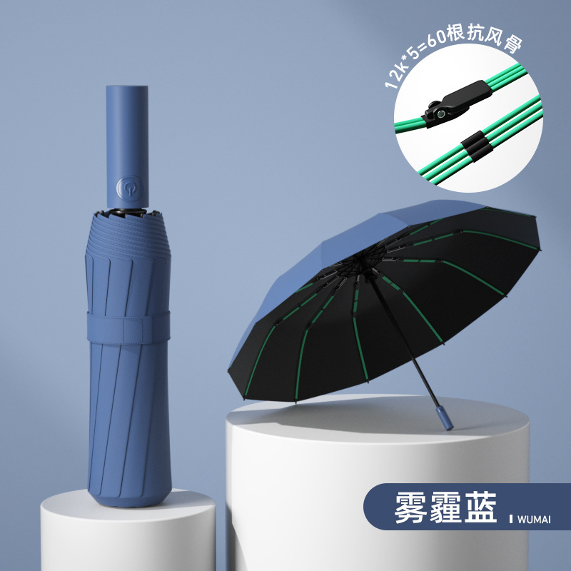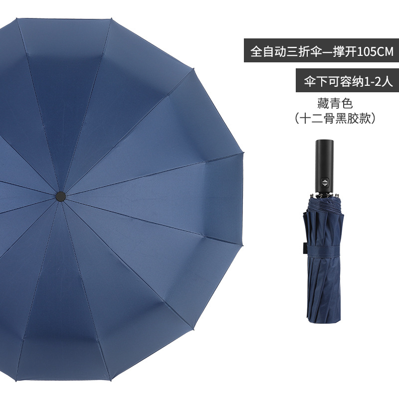 Автоматическая деревянная ручка, медная пряжка 10K, зашифрованная ткань для зонта, утолщенный винил - глубоководный синий