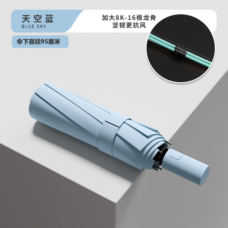 Эквивалентный 24-конусный автоматический армированный солнечный зонт - небесно-голубой