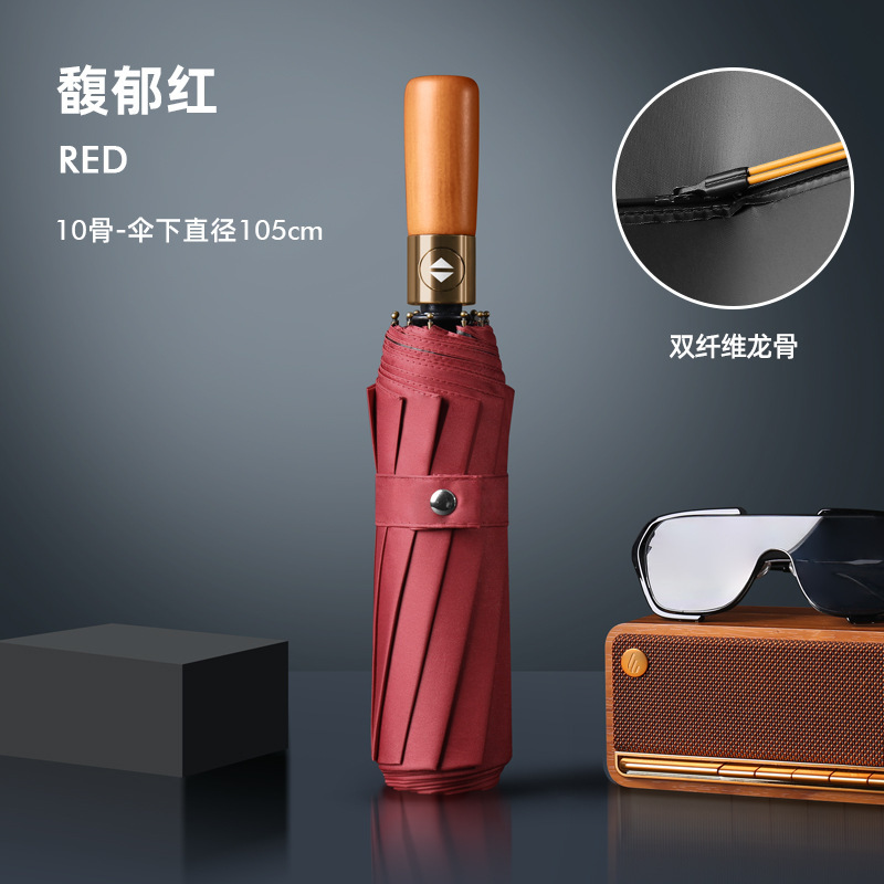 Автоматическая деревянная ручка, медная пряжка 10K, зашифрованная ткань для зонта, утолщенный винил-бордовый