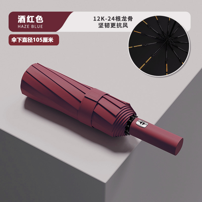 Эквивалентный 24-конусный автоматический армированный солнечный зонт-бордовый