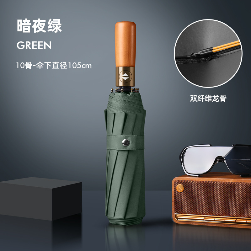 Автоматическая деревянная ручка, медная пряжка 10K, зашифрованная ткань для зонта, утолщенный винил, темно-ночной зеленый цвет